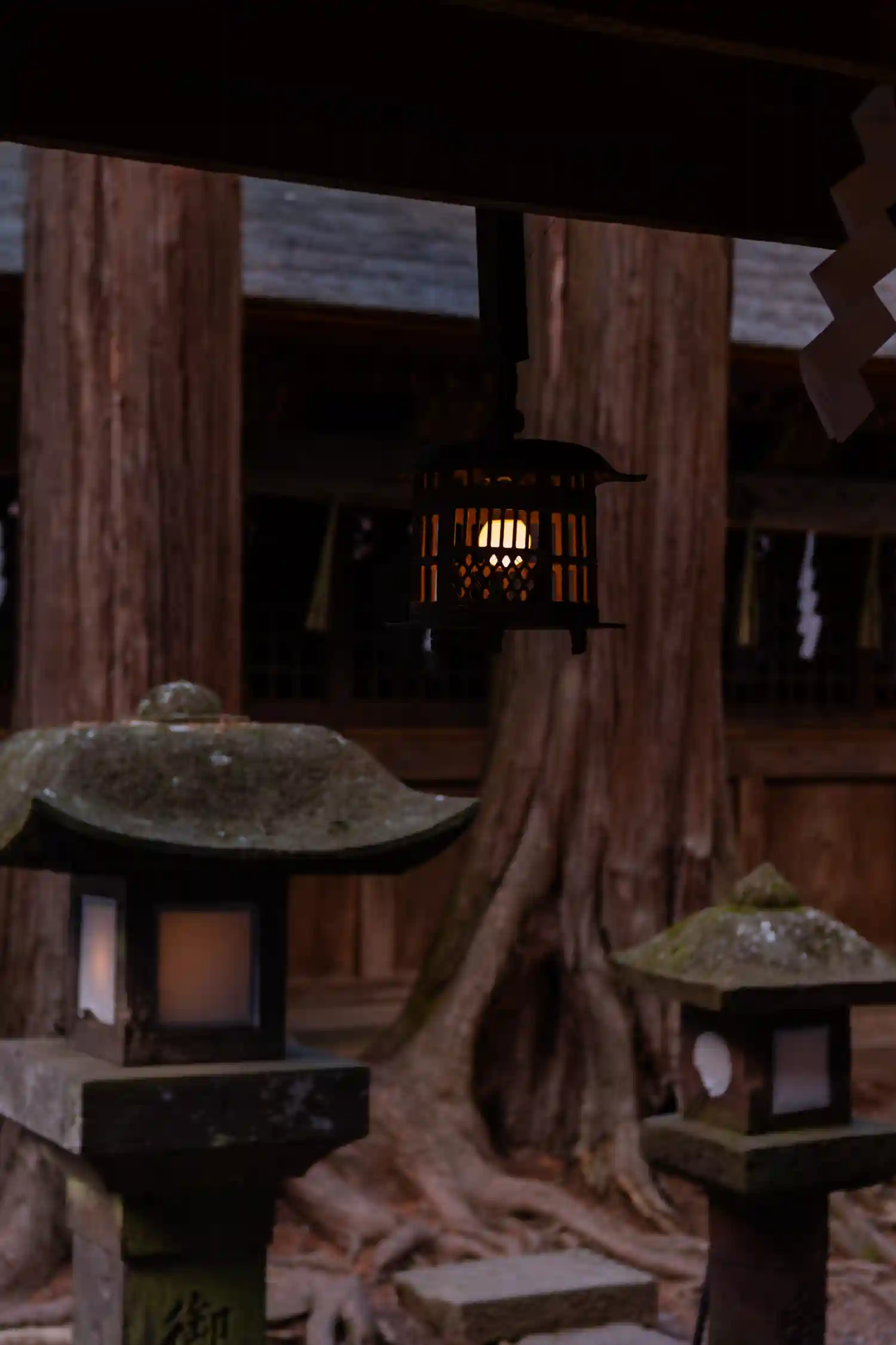 出雲とも関係が深いことから太いしめ縄がありま…