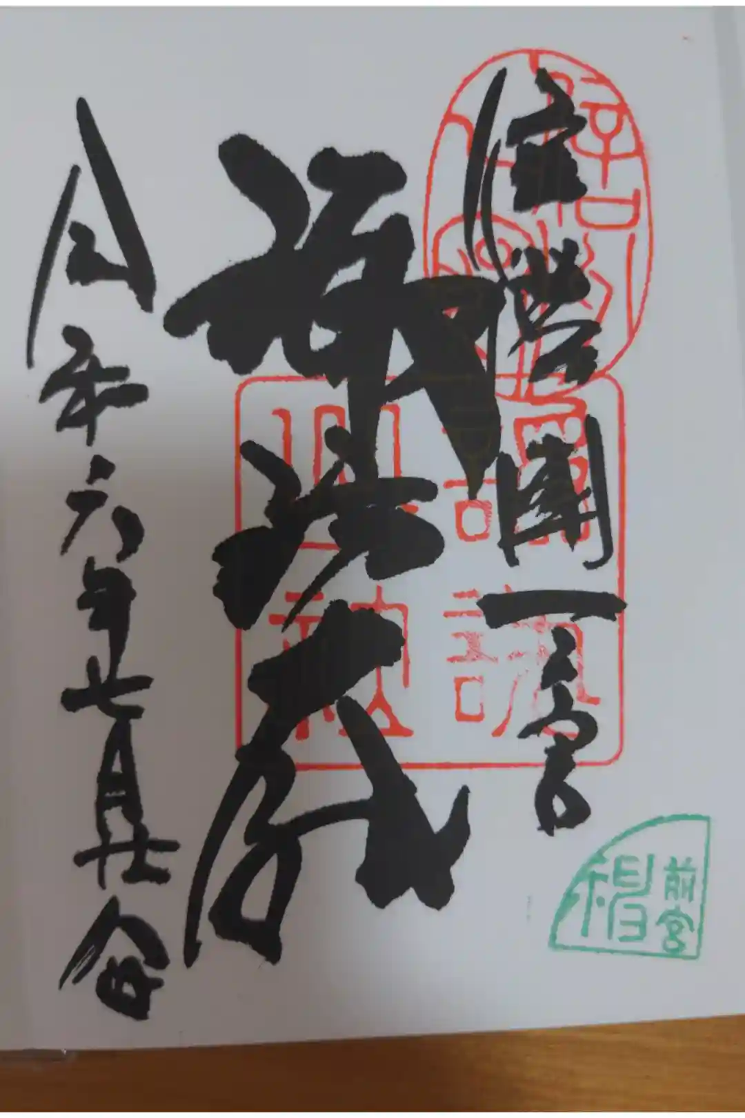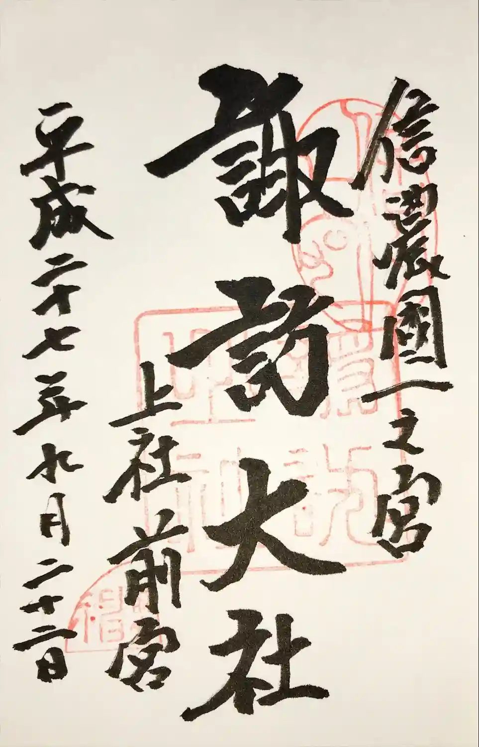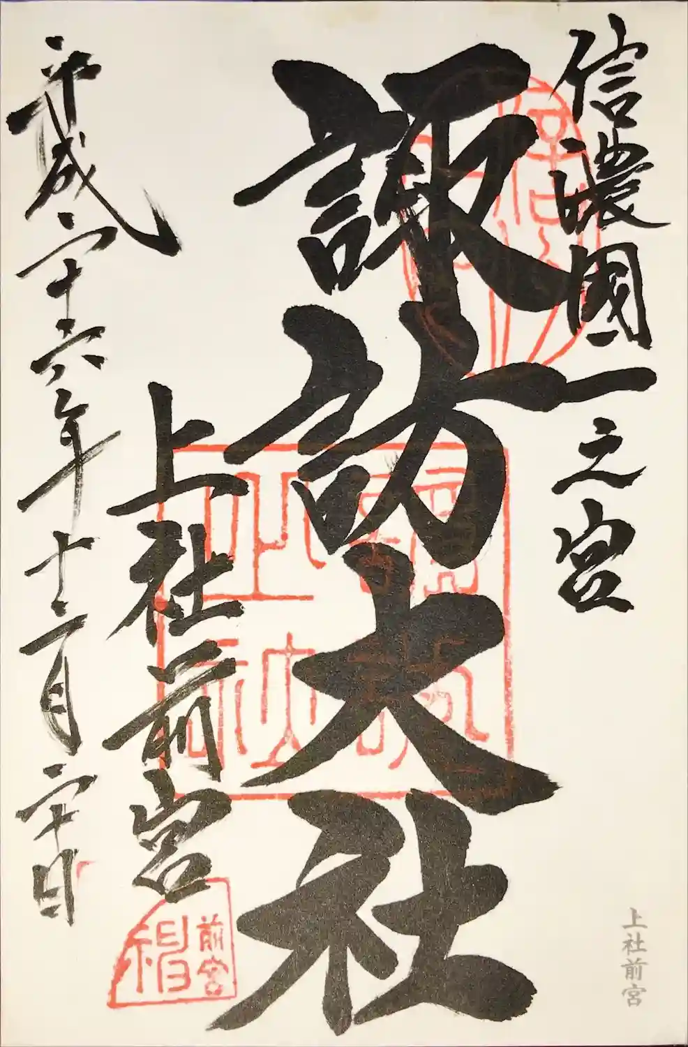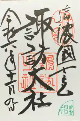 諏訪大社前宮の直書き御朱印です。