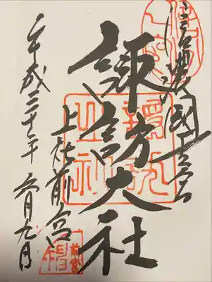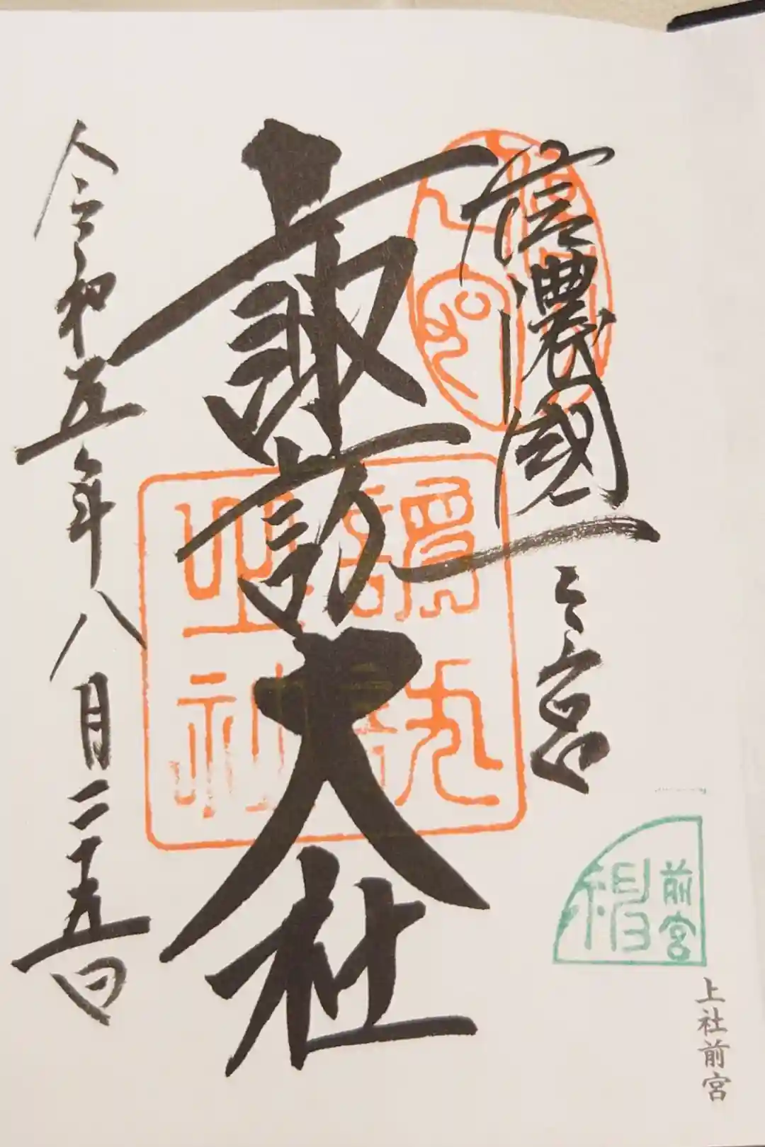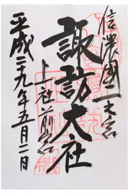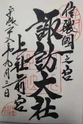 上社前宮の御朱印です。ありがとうございました。