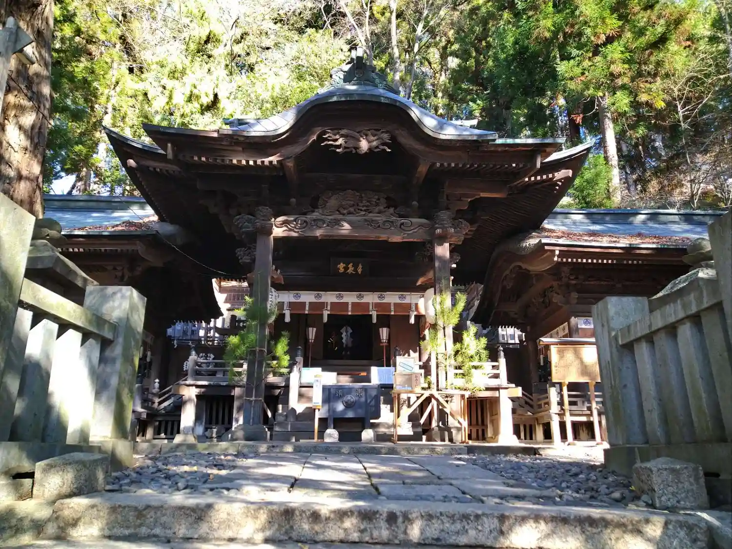 拝殿 向拝の彫刻が美しい