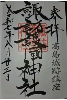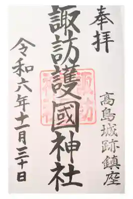 諏訪護国神社の御朱印・御朱印帳