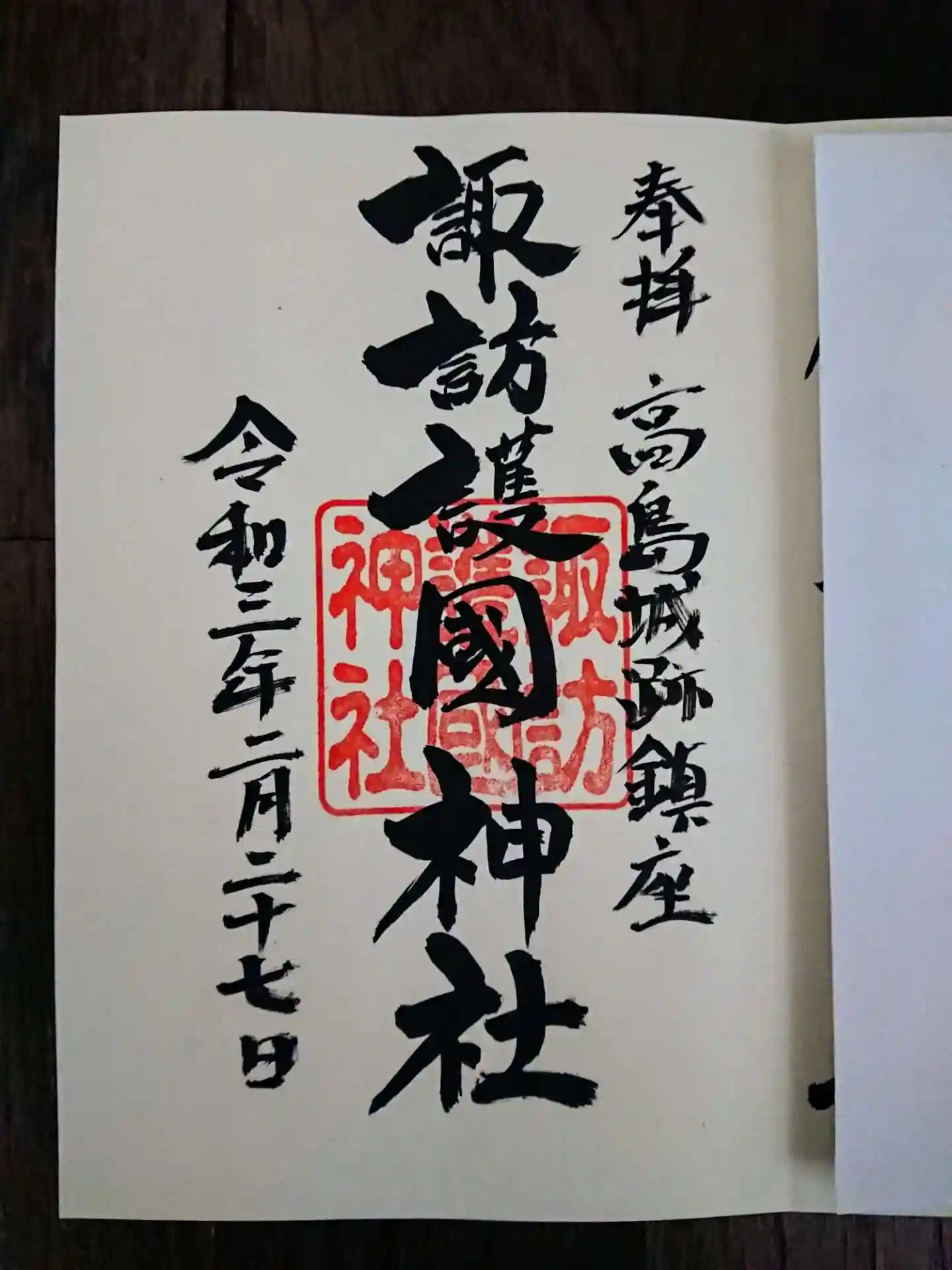 高島城内にありました。御朱印の貼り紙はあったのですがいらっしゃらなかったため御朱印は頂くことができ…