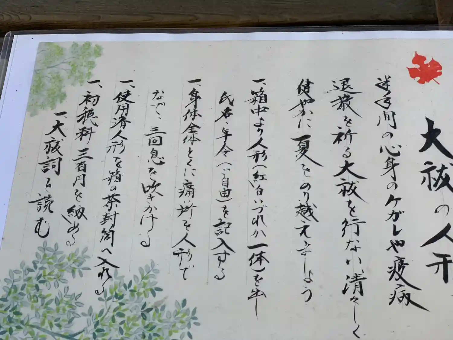 賽銭箱の上に書置きあります