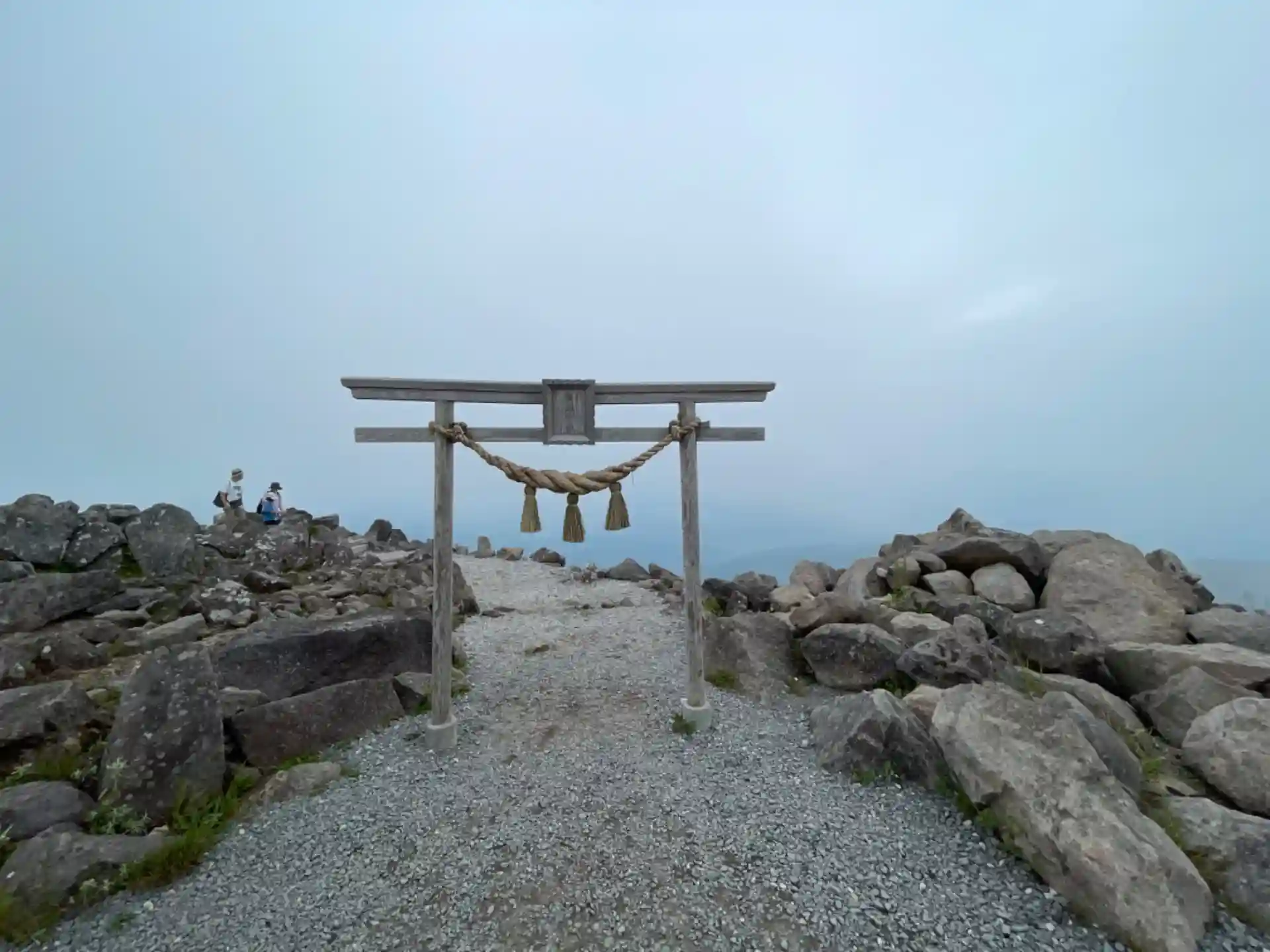 車山神社〜鳥居・鳥居向かって左側の柱のところに富士山🗻が見える