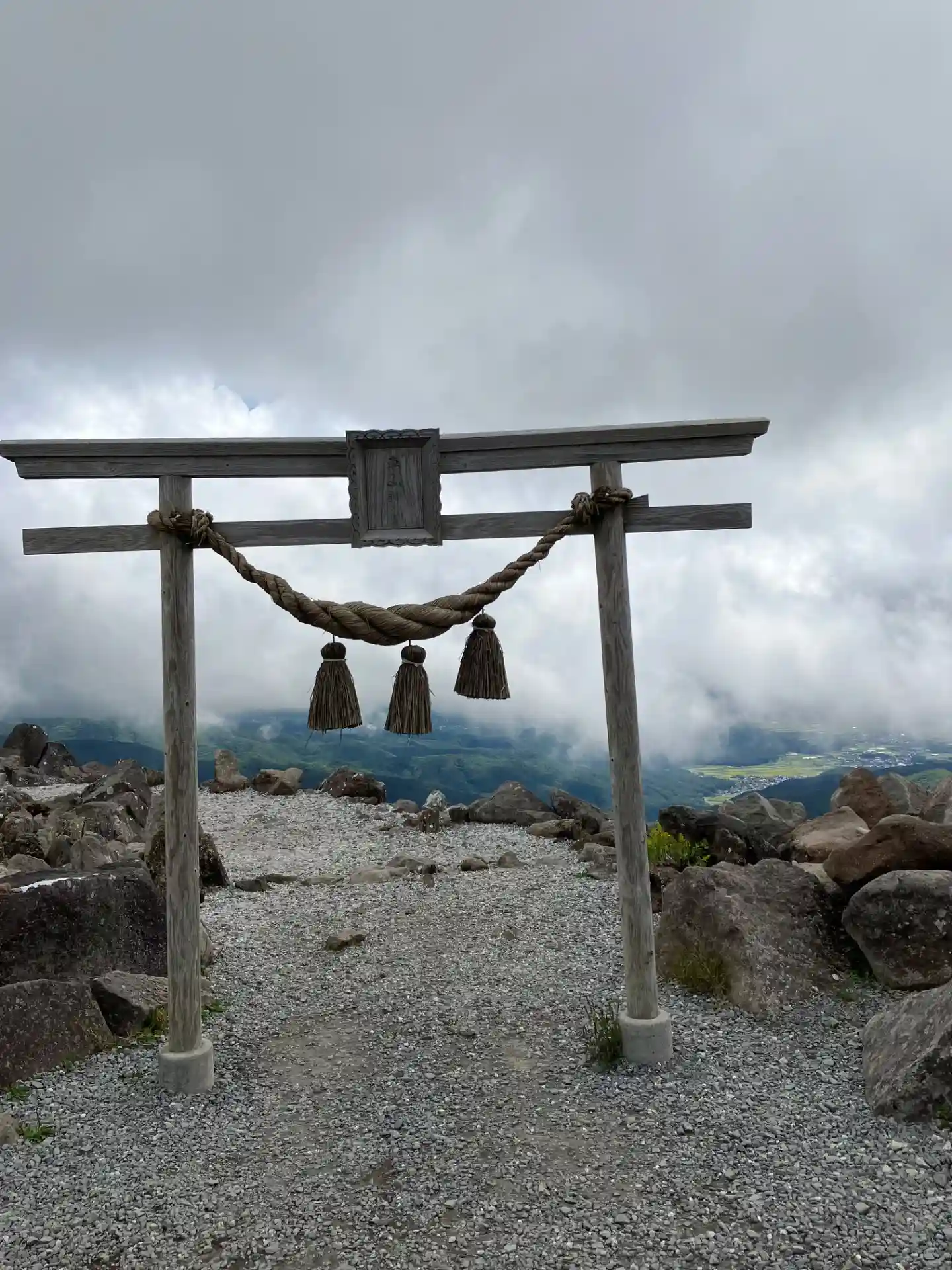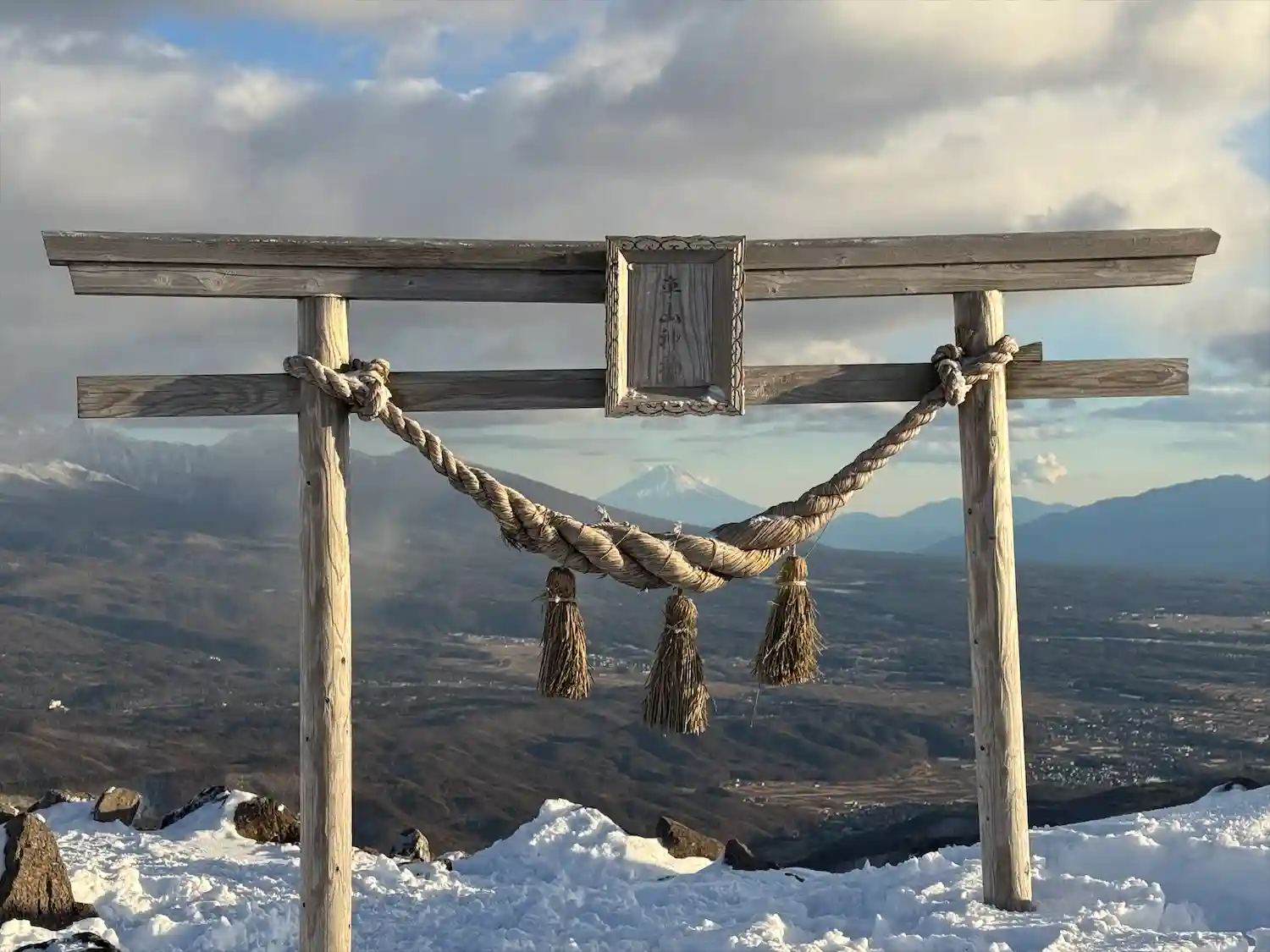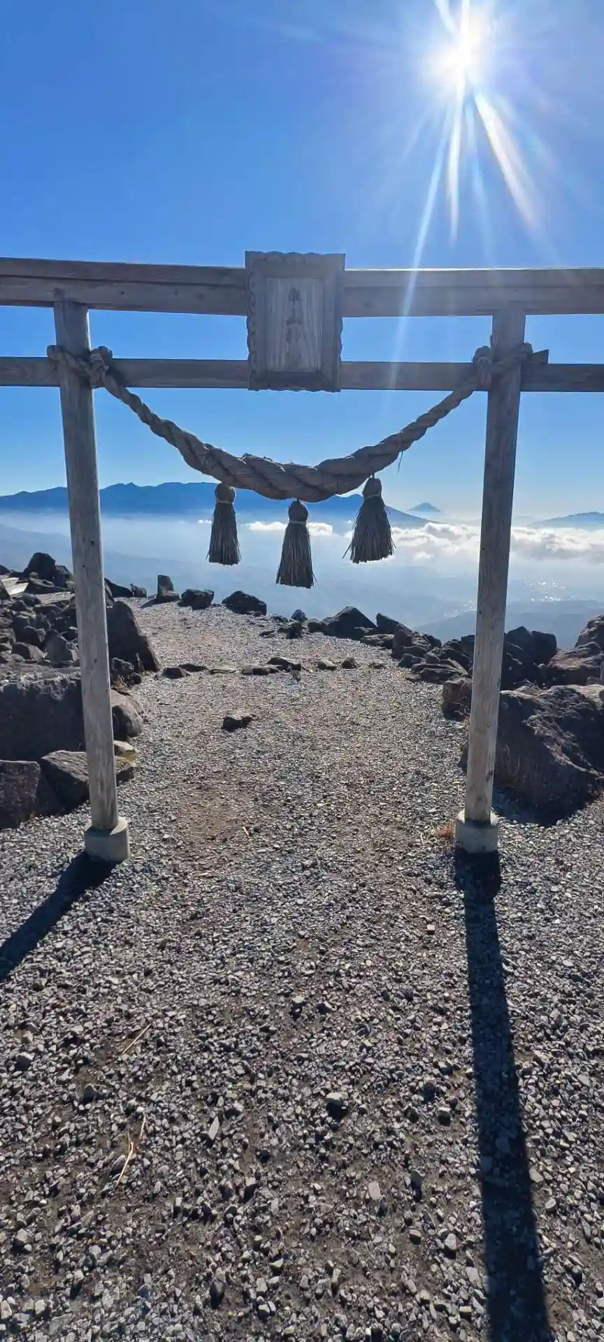 車山神社〜鳥居・鳥居向かって左側の柱のところに富士山🗻が見える