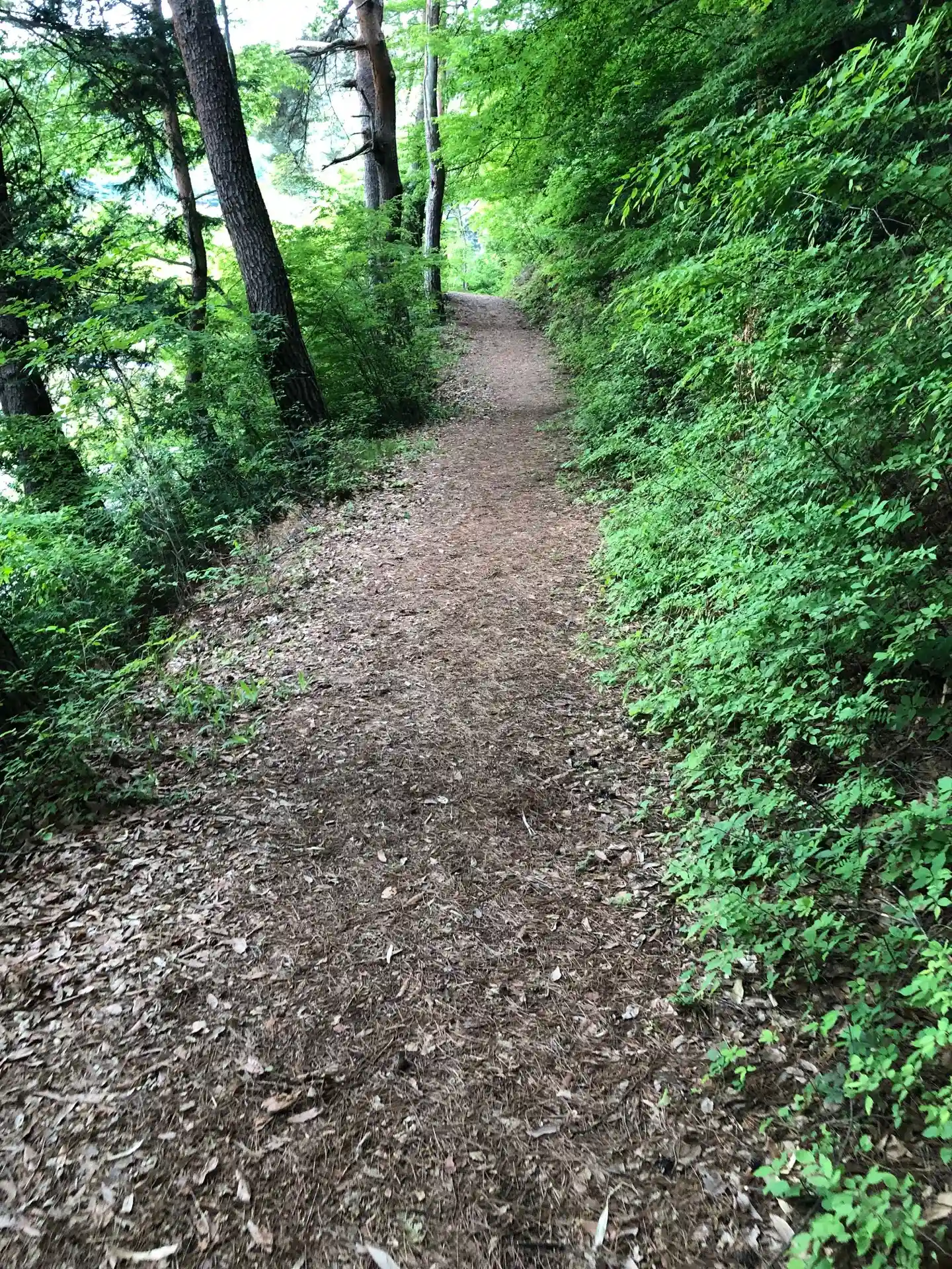 途中で山道の道路が横切り、この道沿いに公園があって車を停められます。