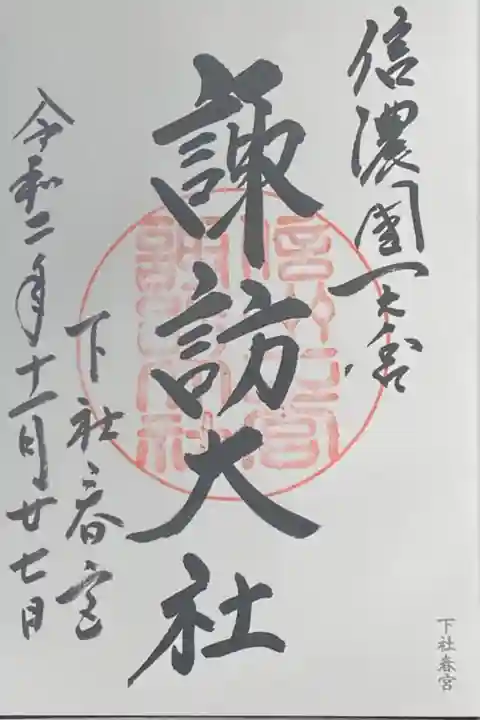 自分は本宮で諏訪神社オリジナル御朱印帳を購入し4宮の御朱印を頂戴し、