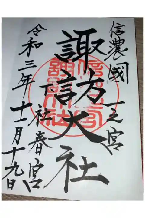 諏訪大社四社(前宮、本宮、春宮、秋宮)で御朱印を受けると参拝の記念品もらえます。