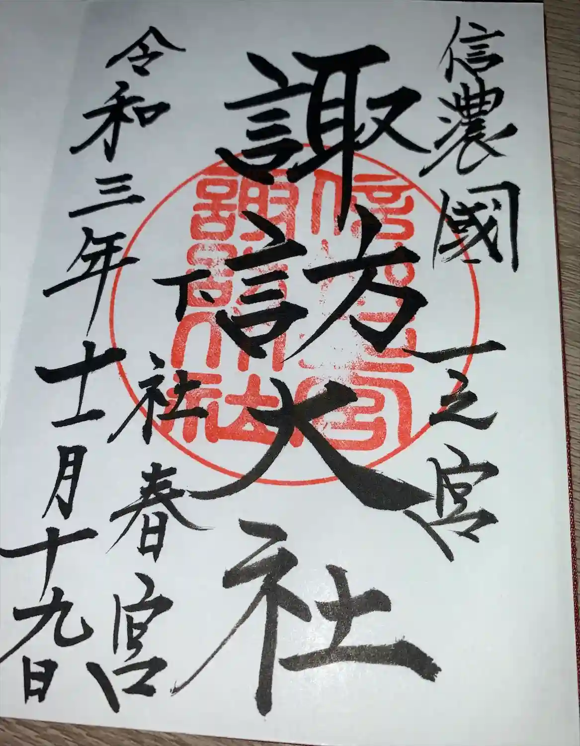 諏訪大社四社(前宮、本宮、春宮、秋宮)で御朱印を受けると参拝の記念品もらえます。