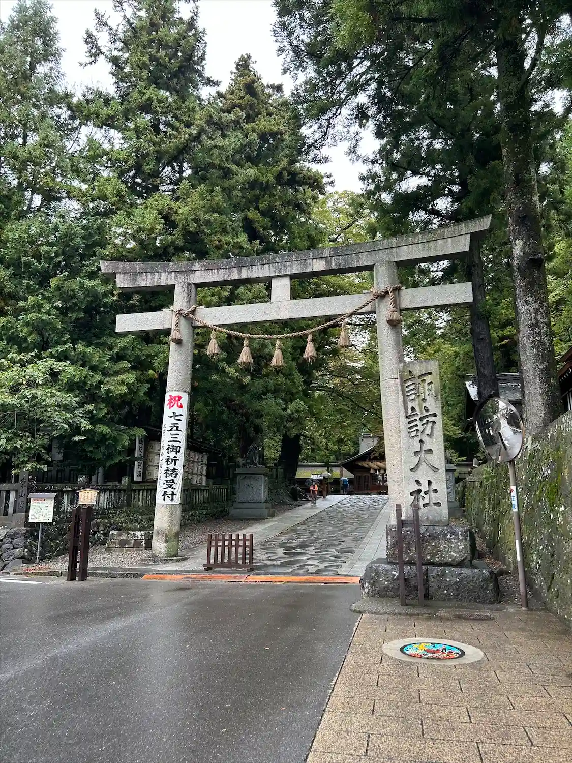 写真を撮り雨に打たれながら参拝しました。