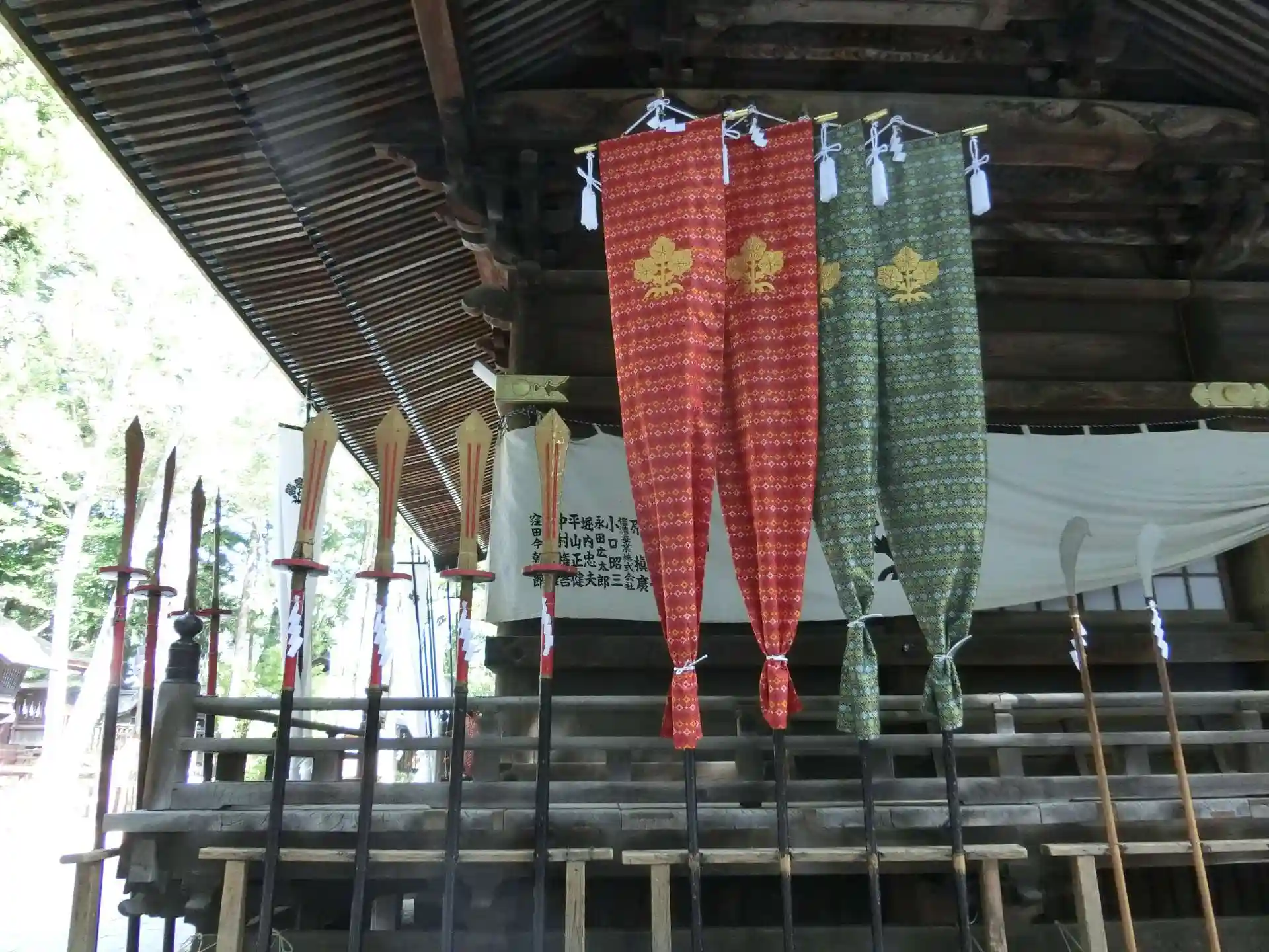 武の神様だけあって拝殿の脇に武具もありましたし、戦国最強・武田氏の庇護を受けたという歴史が、神社さんをより一層強そうに見せているのかもしれません。