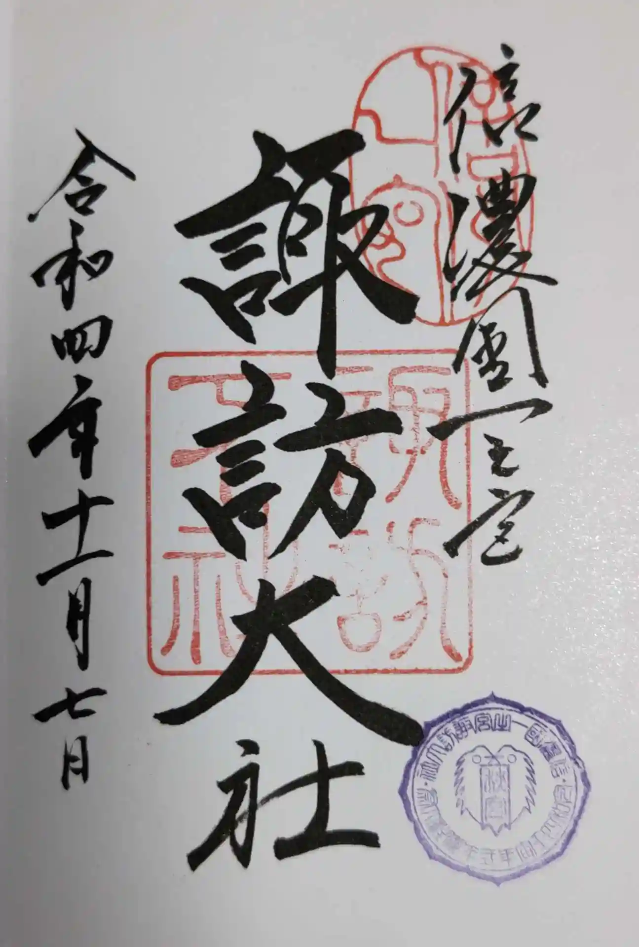 御朱印ですが、今年は御柱年なので限定御朱印になります。さらに4ヶ所で御朱印をいただくと4ヶ所目で記念品が貰えるそうです。