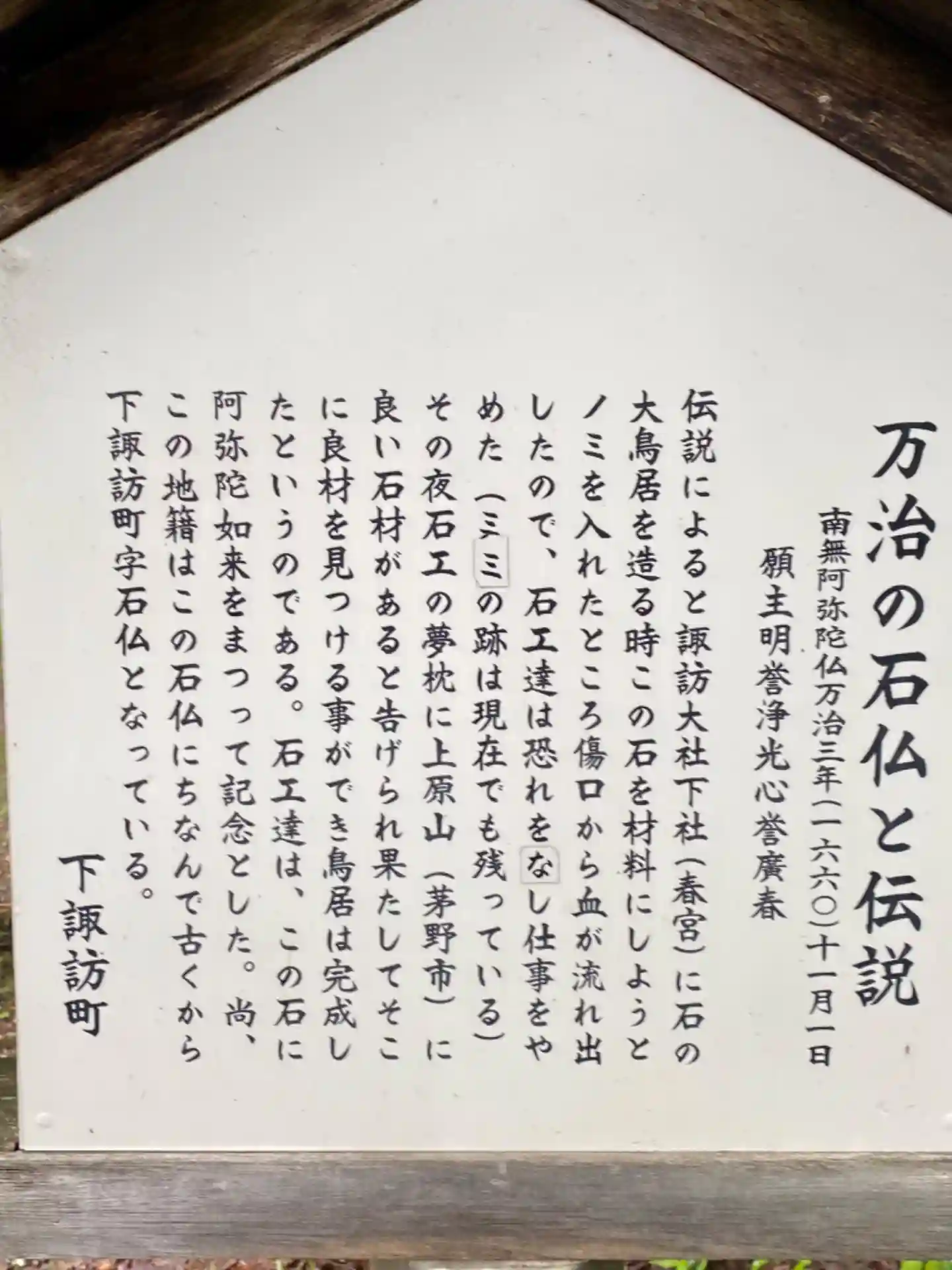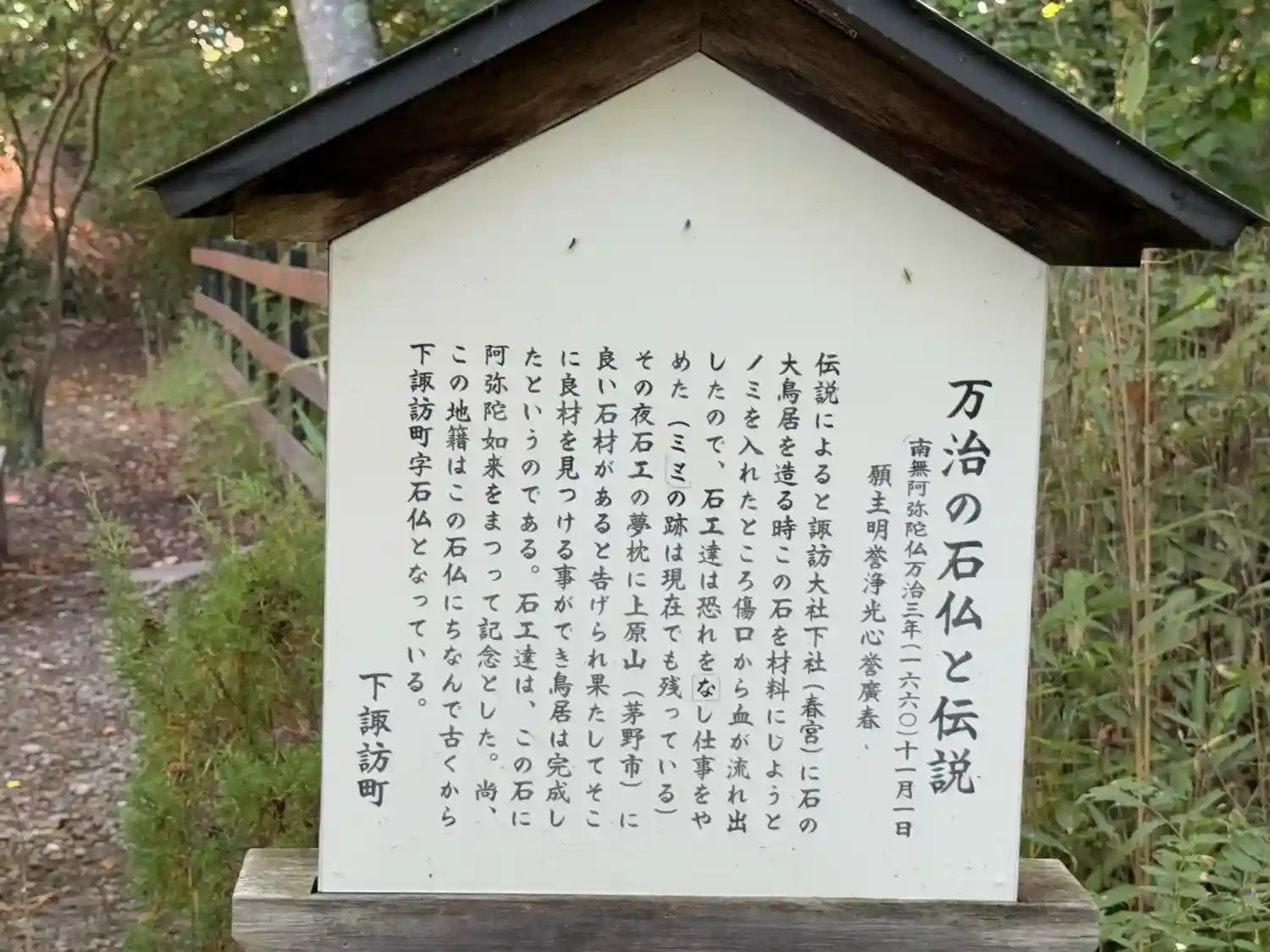 万治の石仏。諏訪大社下社春宮近くの石仏