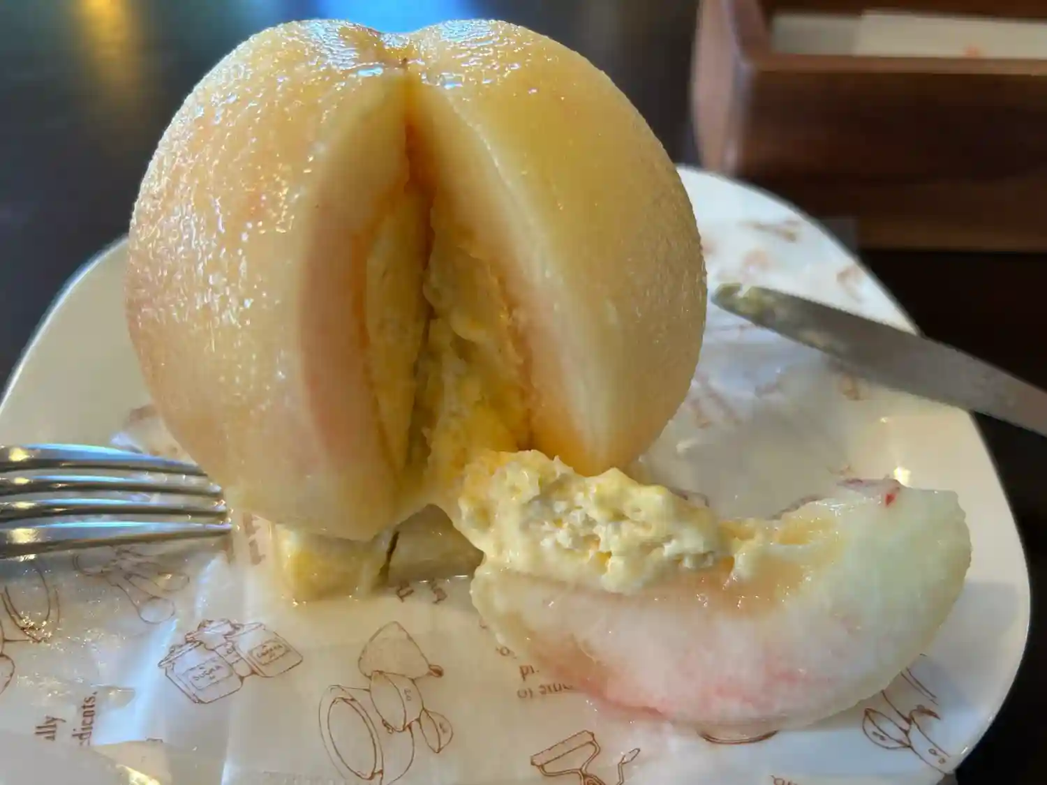 桃の中はカスタードクリーム😋