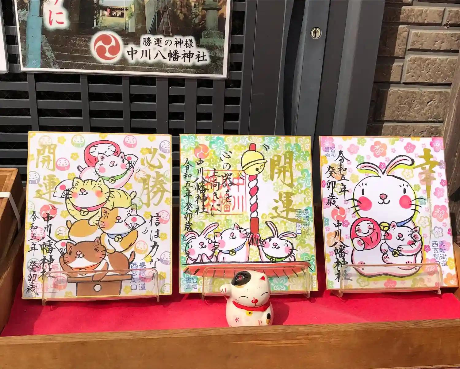 ウサギさんと猫ちゃんが鈴を鳴らしてお参りしてるのがかわいい😻
