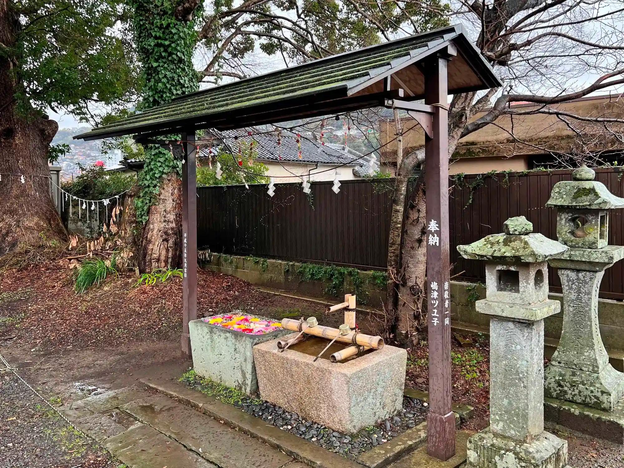 参道が広場に入ったところから右手少し離れたところにある<手水舎>。