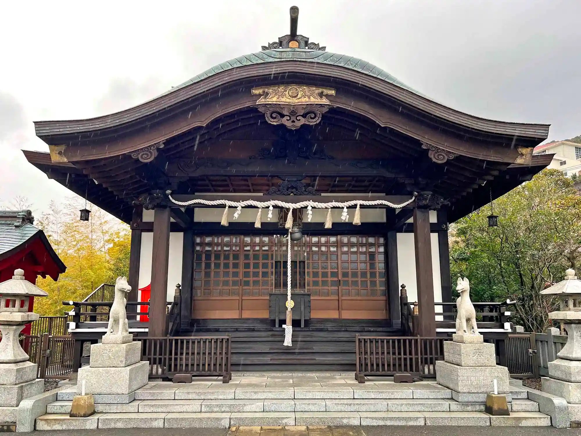 拝殿前左側の<狛狐>。