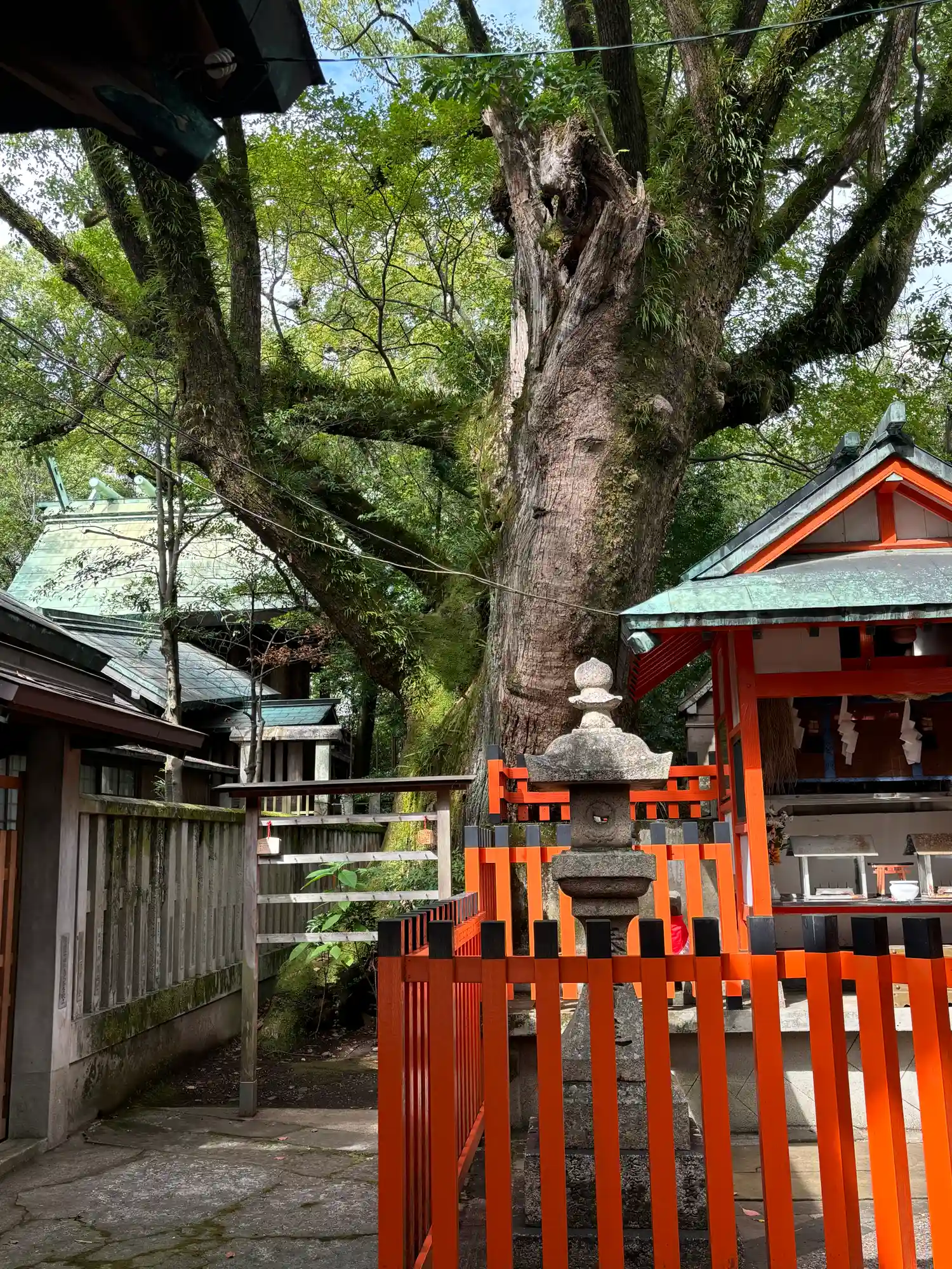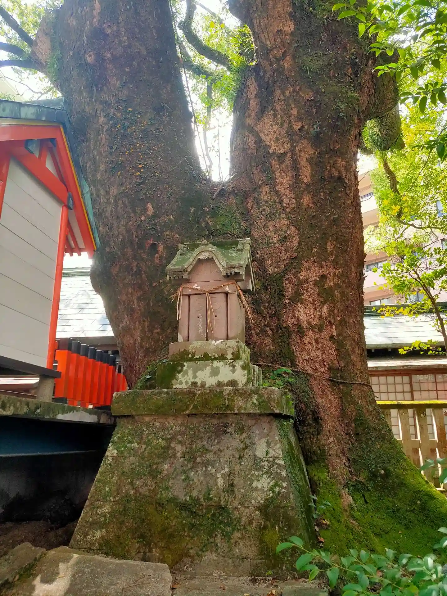 最後に、拝殿右側にある唯一の境内社<楠稲荷神社>狭いスペースでも瑞垣付きで大事にされている。(^▽^)/