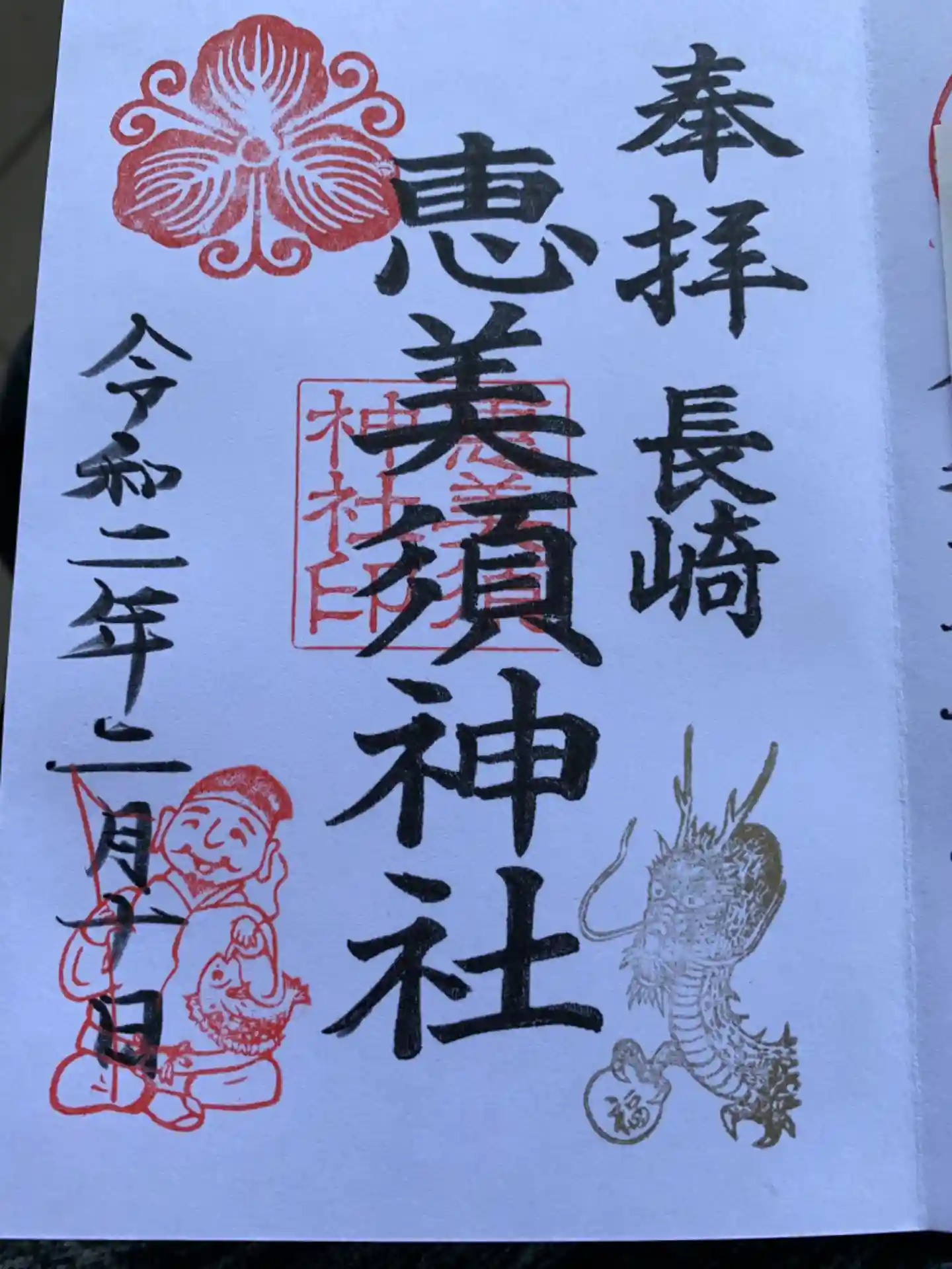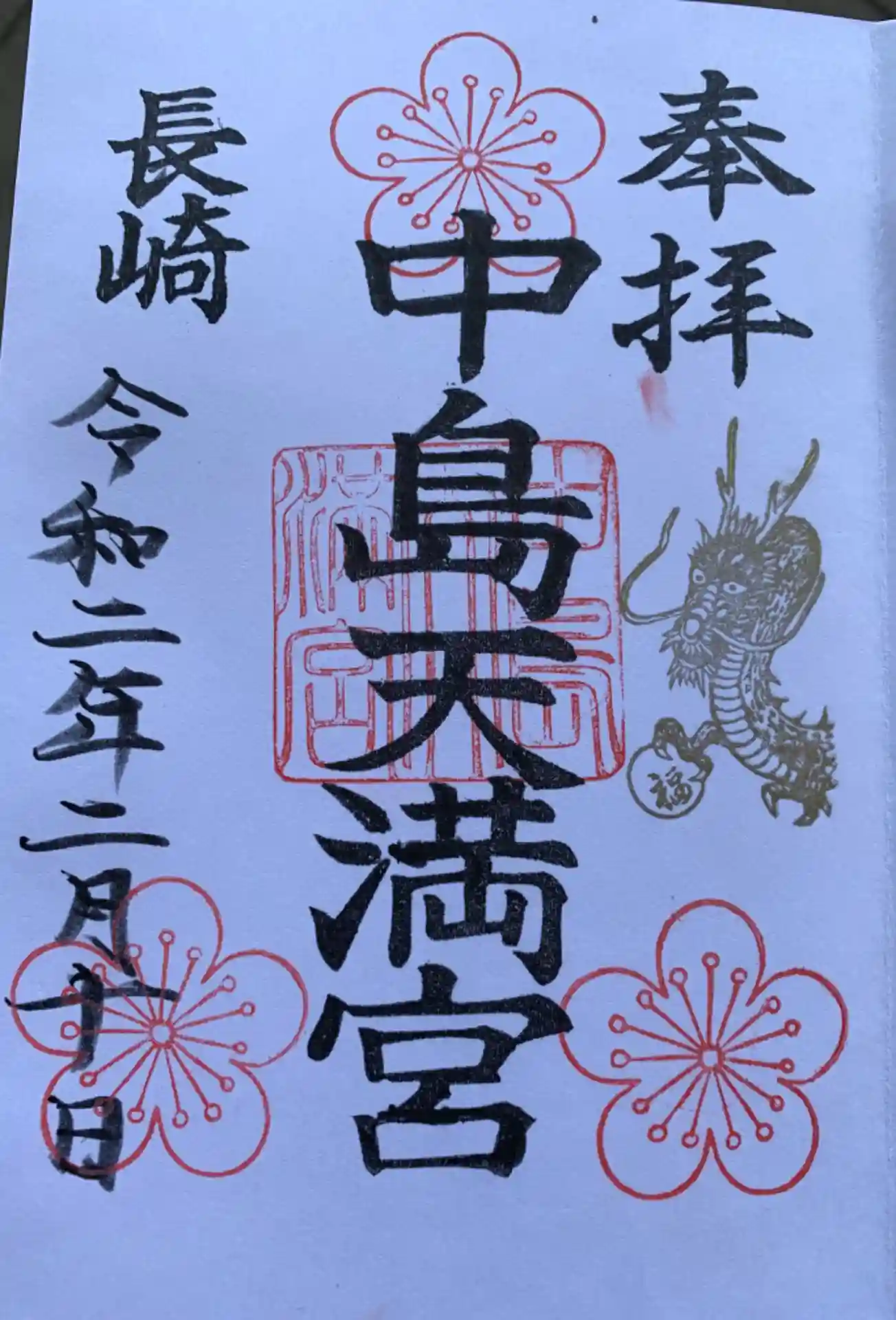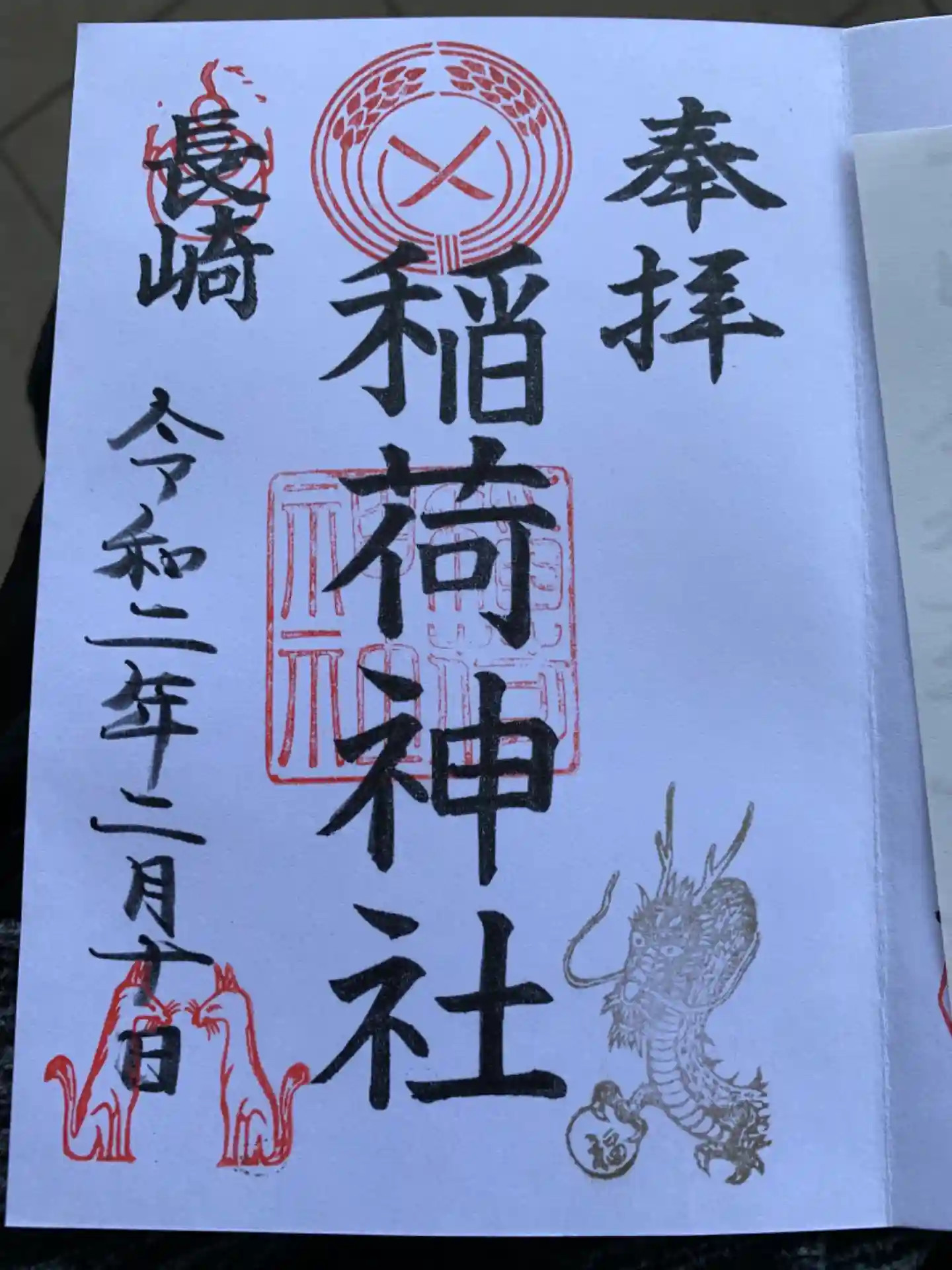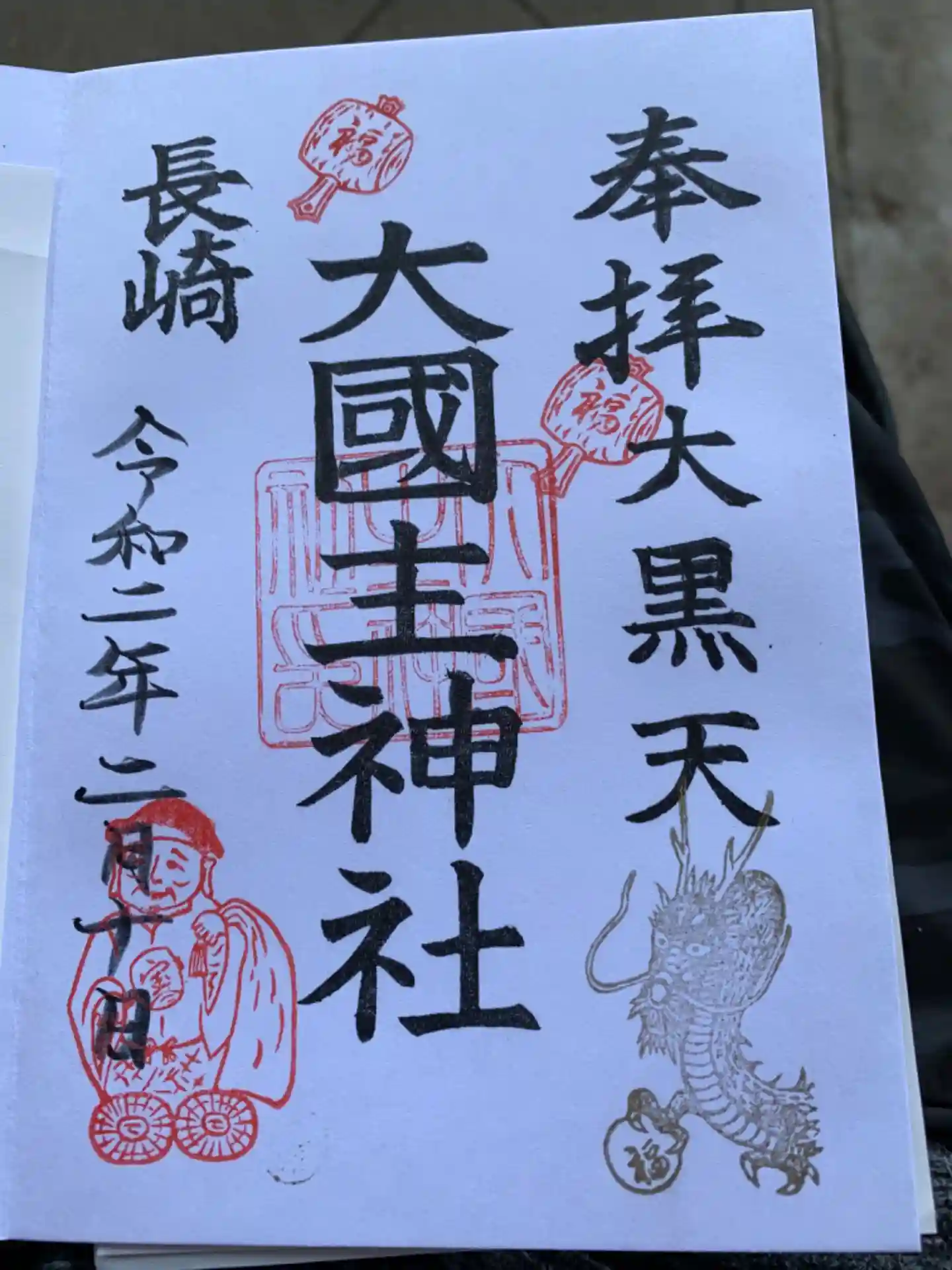 7つの御朱印から6種類選んで記入してもらいました。私が龍を好きって言ったら特別バージョンを作っていただきました。