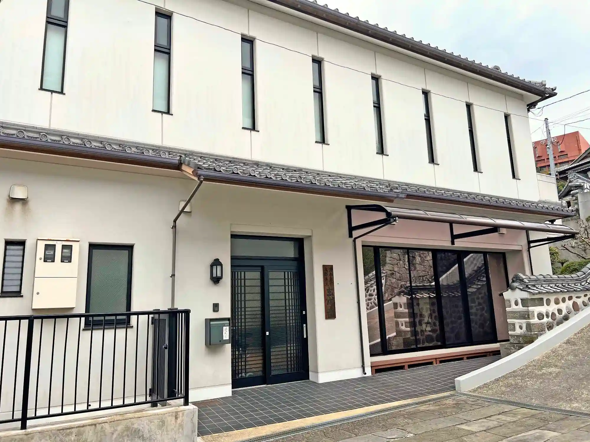 山門をくぐって右側にある<光源寺門信徒会館>。
