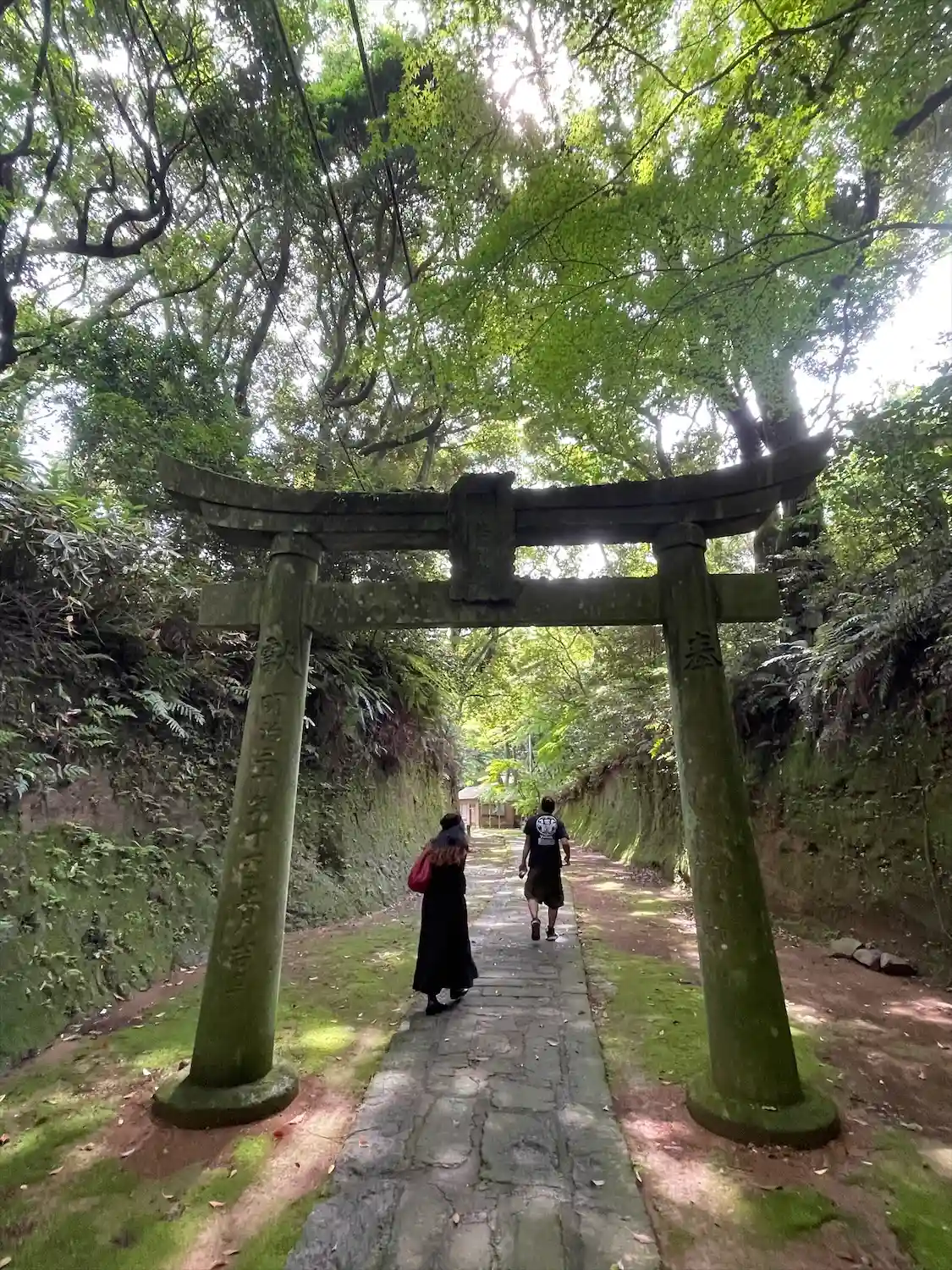 境内に到着すると別世界です。 神域というか… 。 三の鳥居⛩️をくぐると両側が土の壁で、山?を削って参道にしたって感じで、そして空気もひんやりして、パワースポットですね。