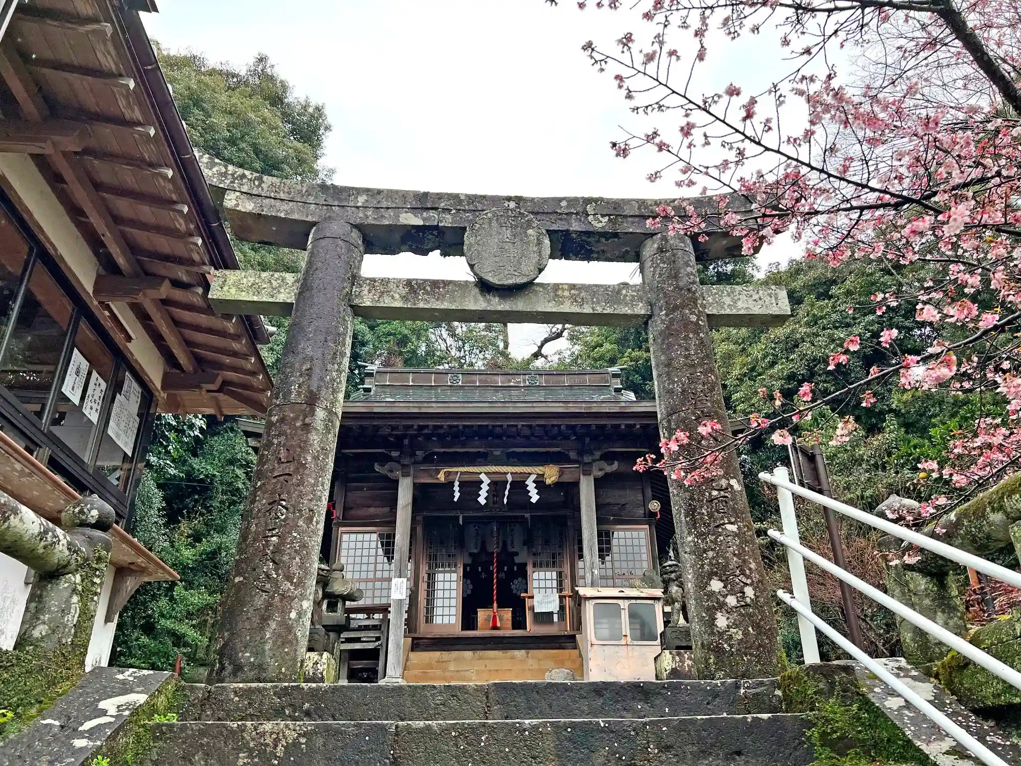 階段には、寒桜の花びらがほどよく散っていて、とてもキレイ。(o^―^o)
