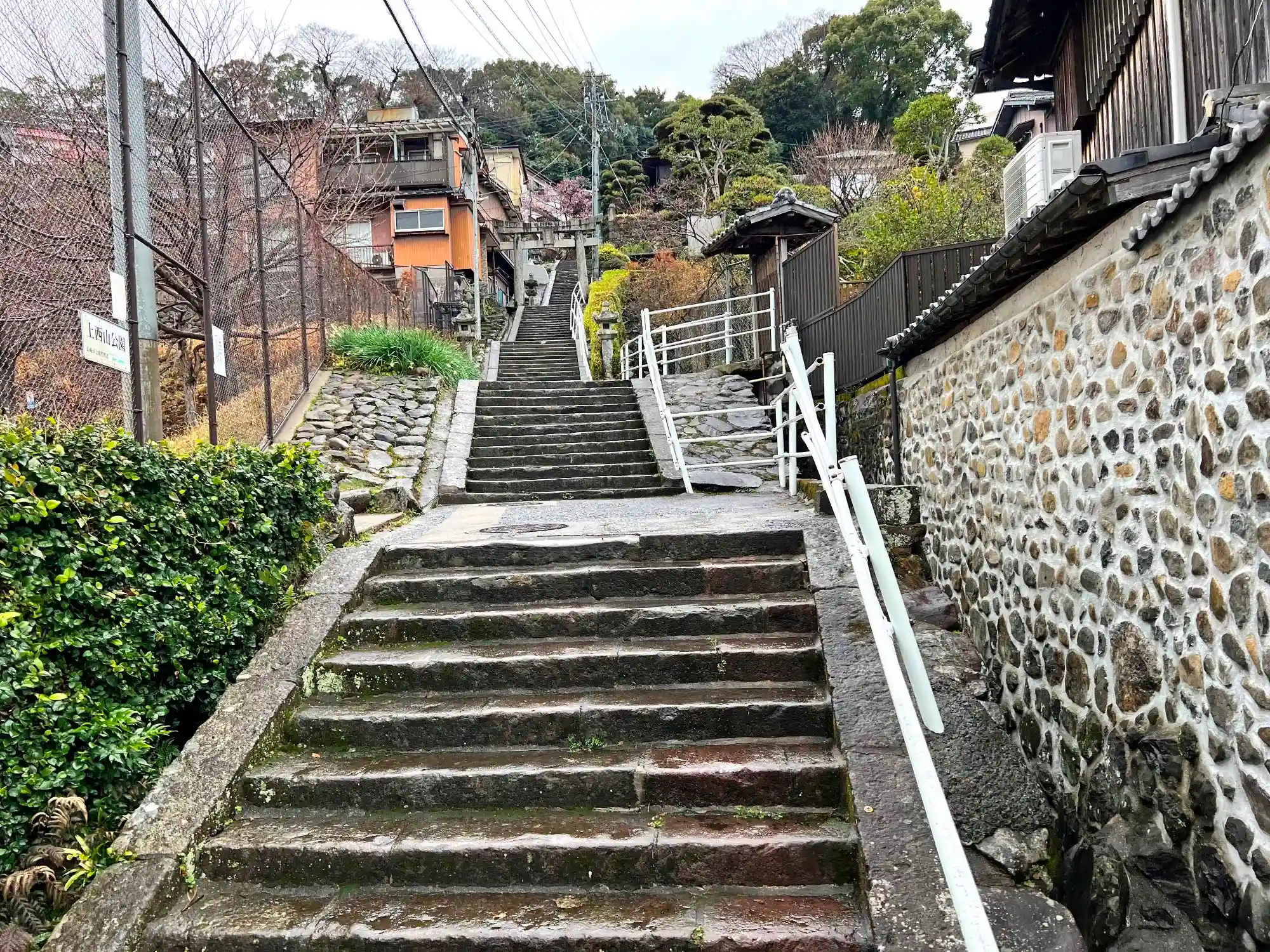 階段の途中にある<二の鳥居>。階段の先にはまだ社殿が見えない。。。