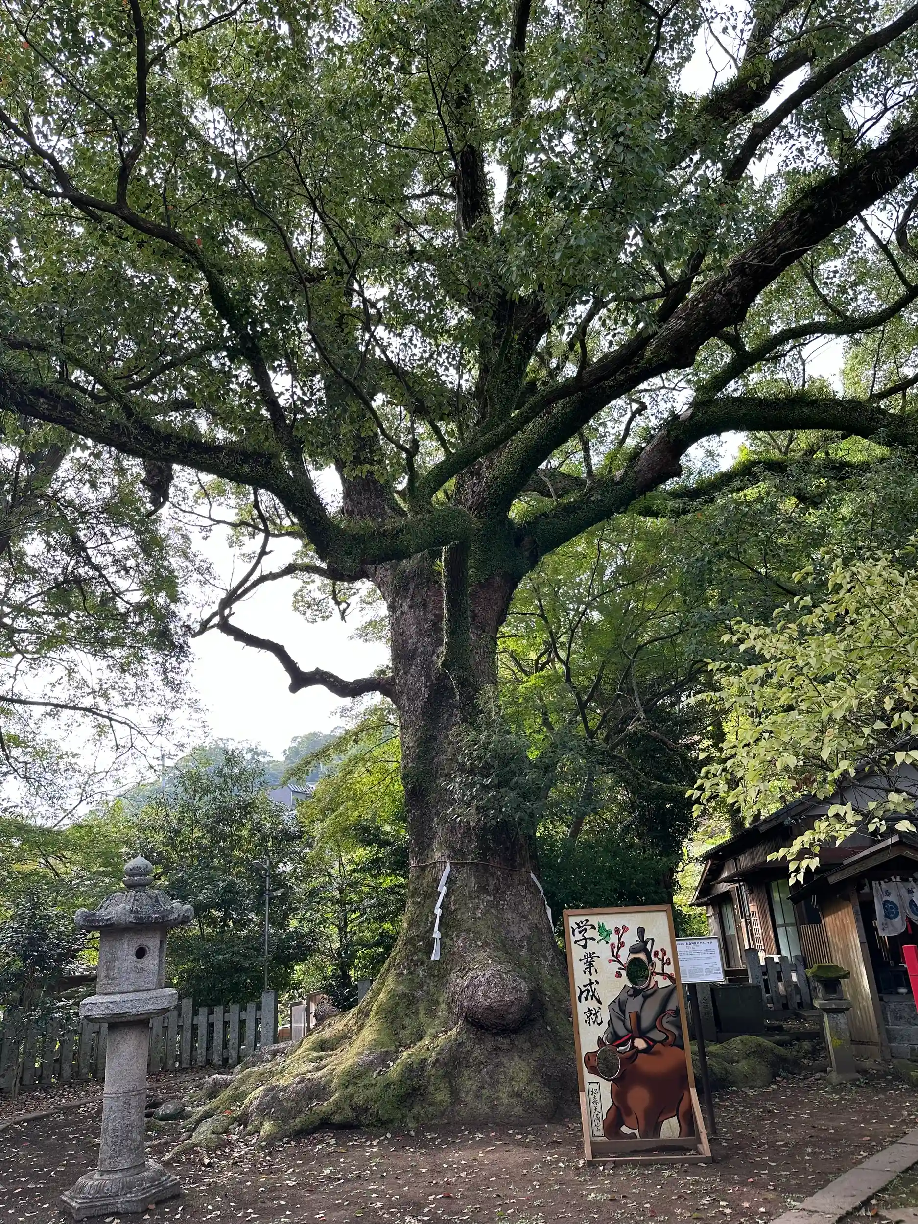 今はその松の木はありませんが、境内には市指定天然記念物である、7本の大きなクスノキが群生しています。高さ約20~30m、幹回りは大きいもので約8mにもなり、四方約30mの美しい樹冠を作っています。また、天満宮ならではの梅の木も数多くあり、1月下旬から2月上旬まで美しい花を鑑賞できます。