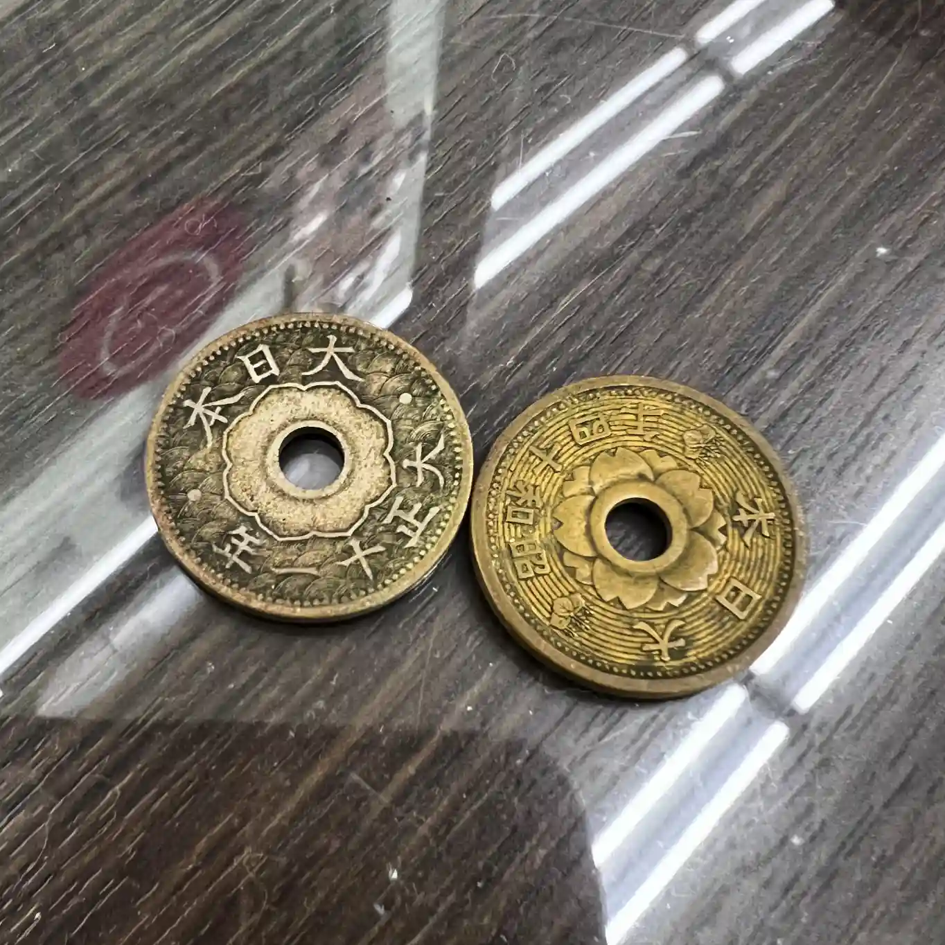 写真は五円玉に紛れ込んでいた10銭