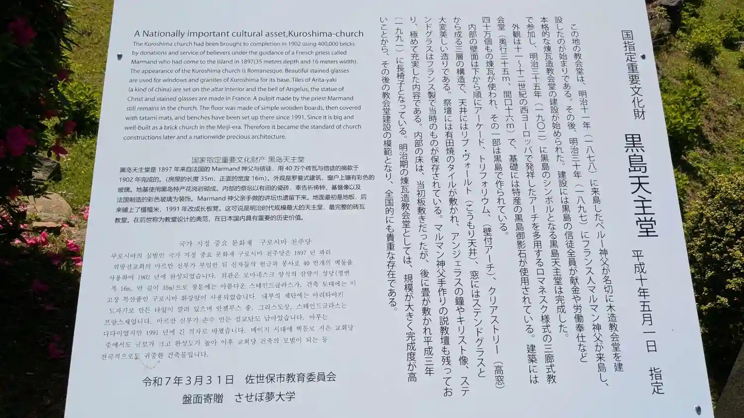 | 文化財 | 黒島天主堂(国指定重要文化財)