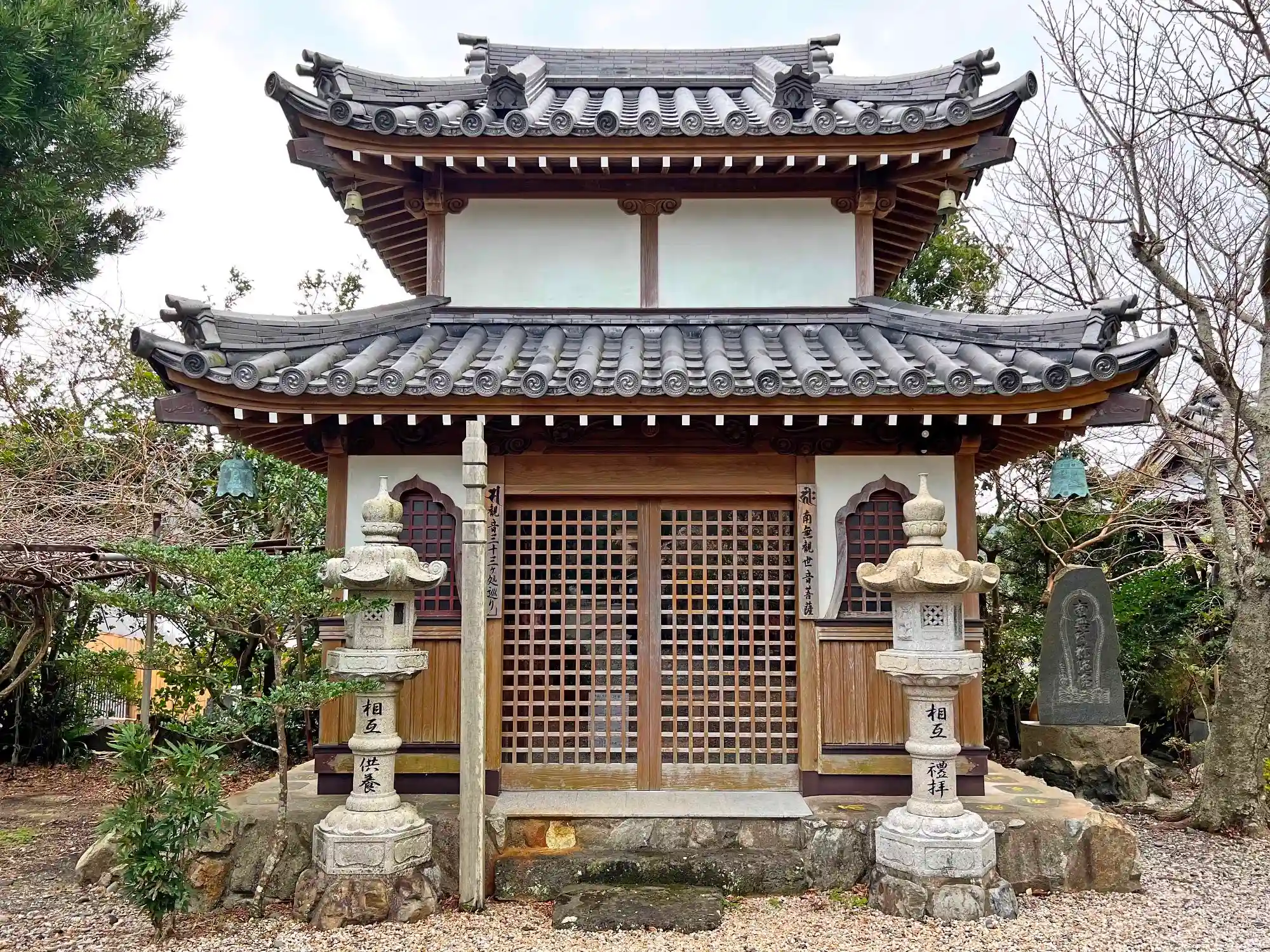 こちらは<観音堂>で、表札には「南無観世音菩薩」、「観音三十三カ処巡り」と書いてある。