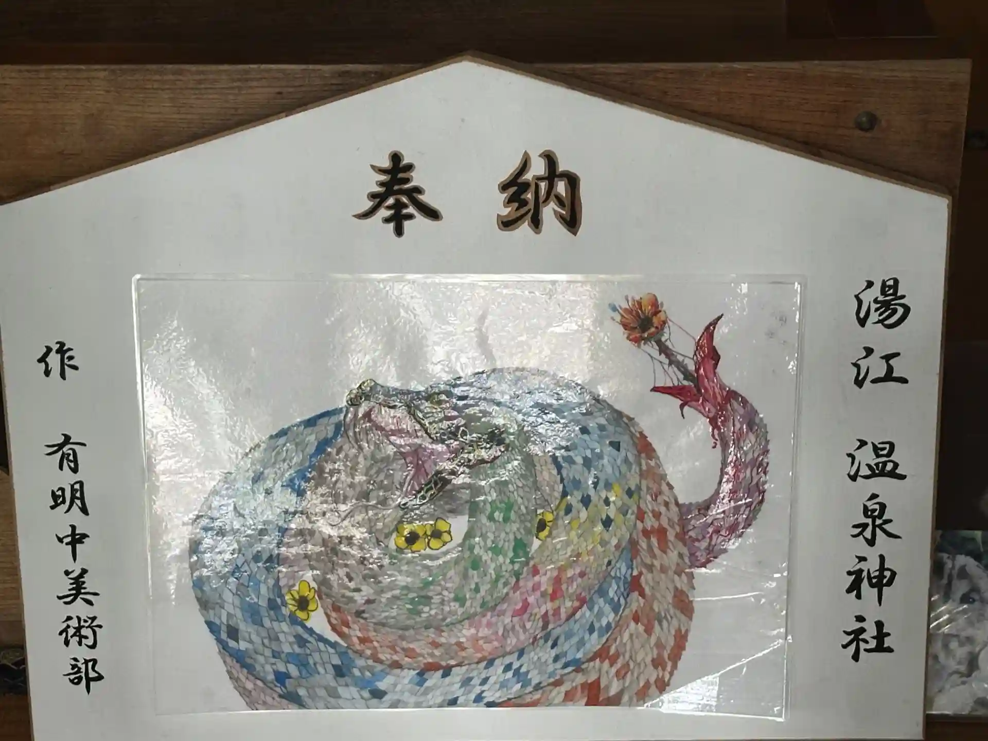 近所の中学校の美術部の奉納です。綺麗なウロコですね。