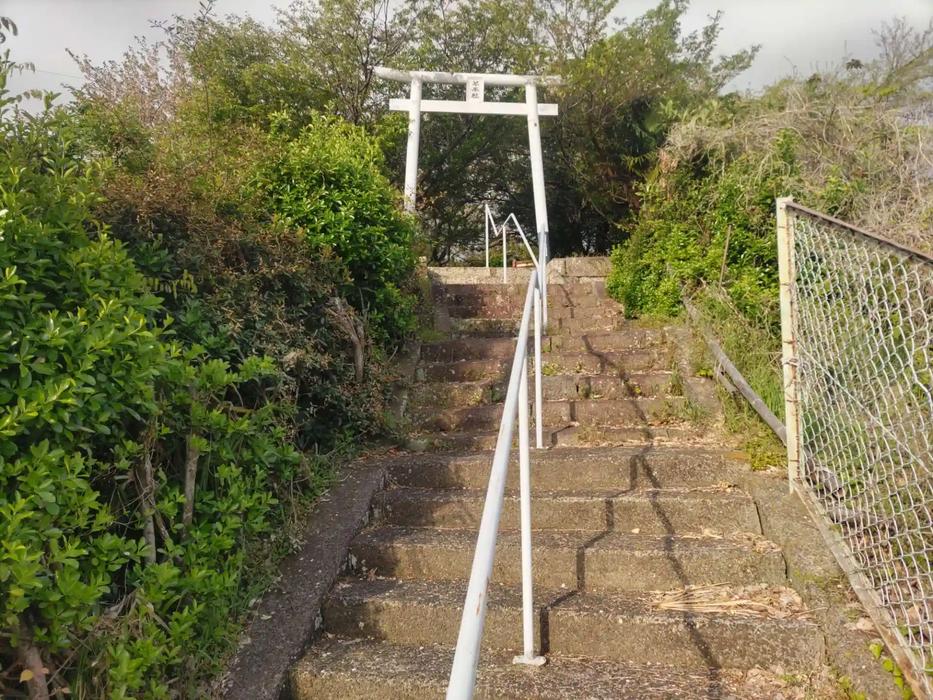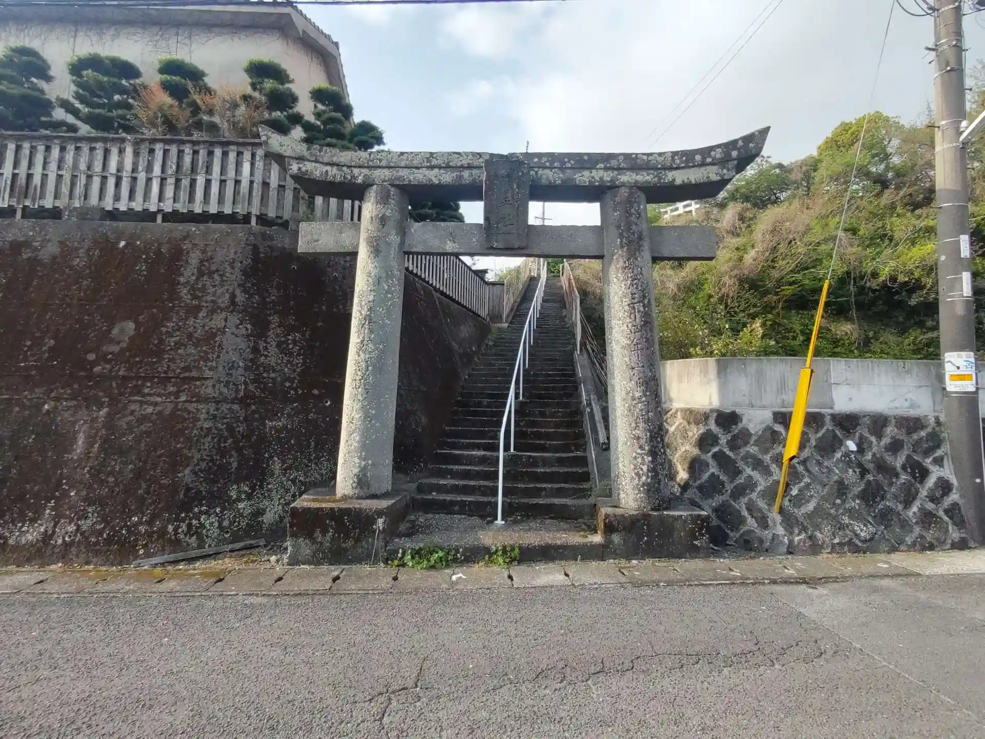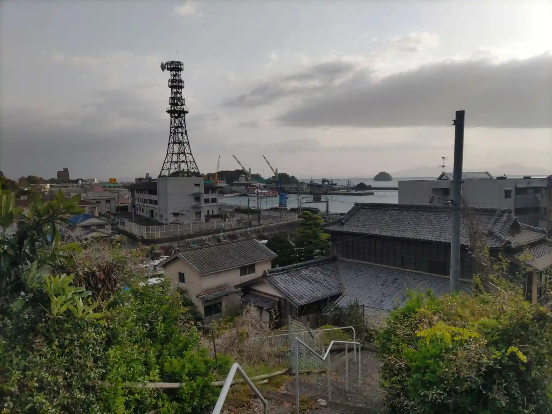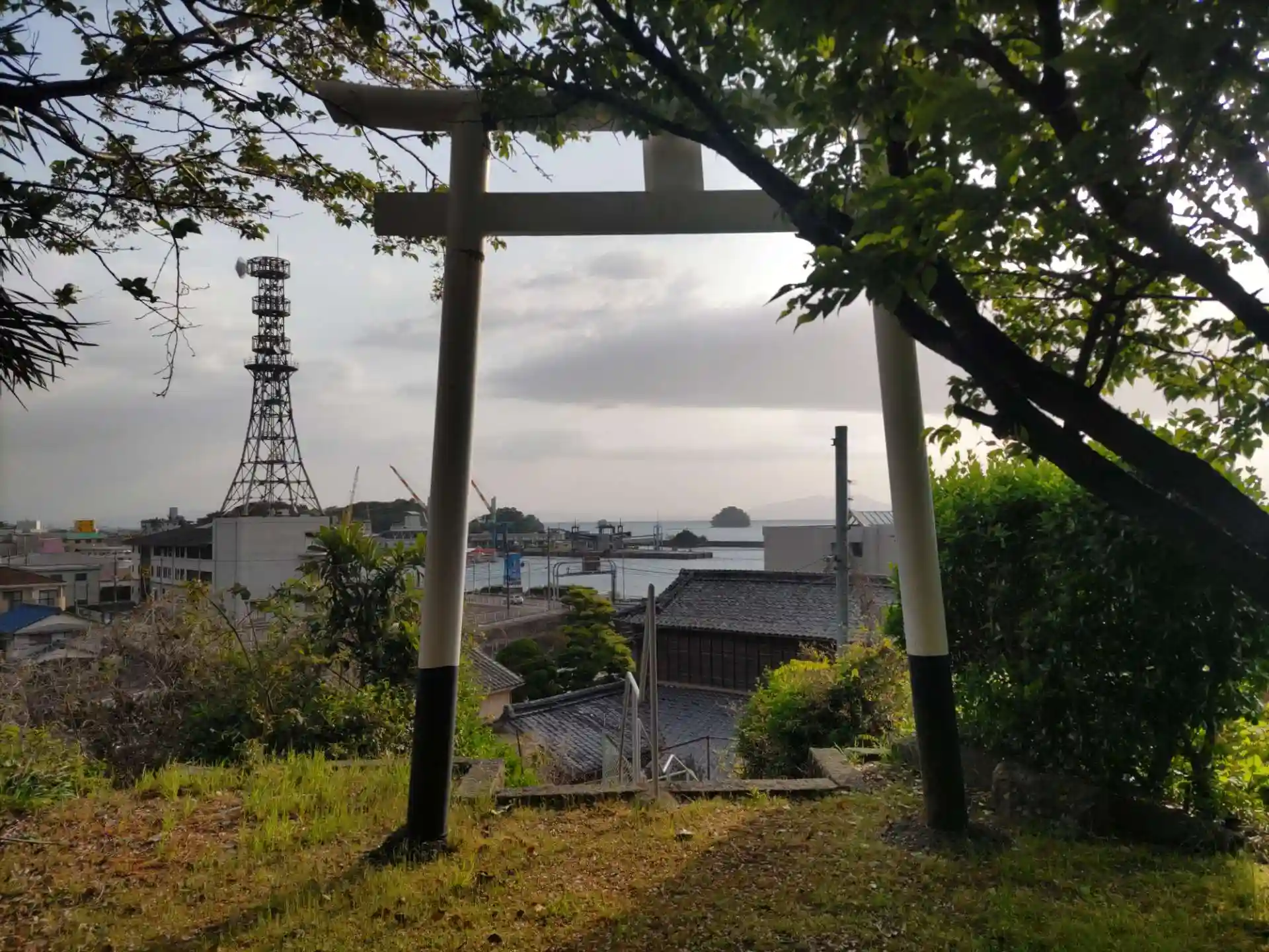 階段上の鳥居からは港が一望できます。