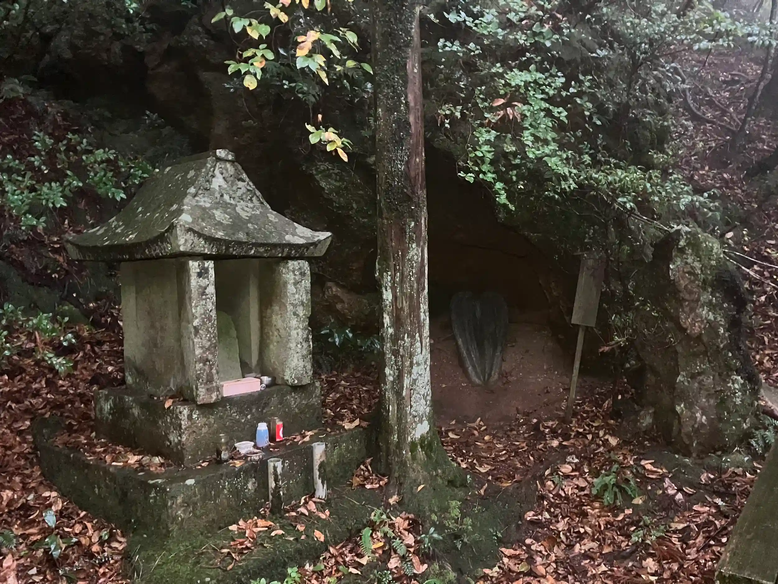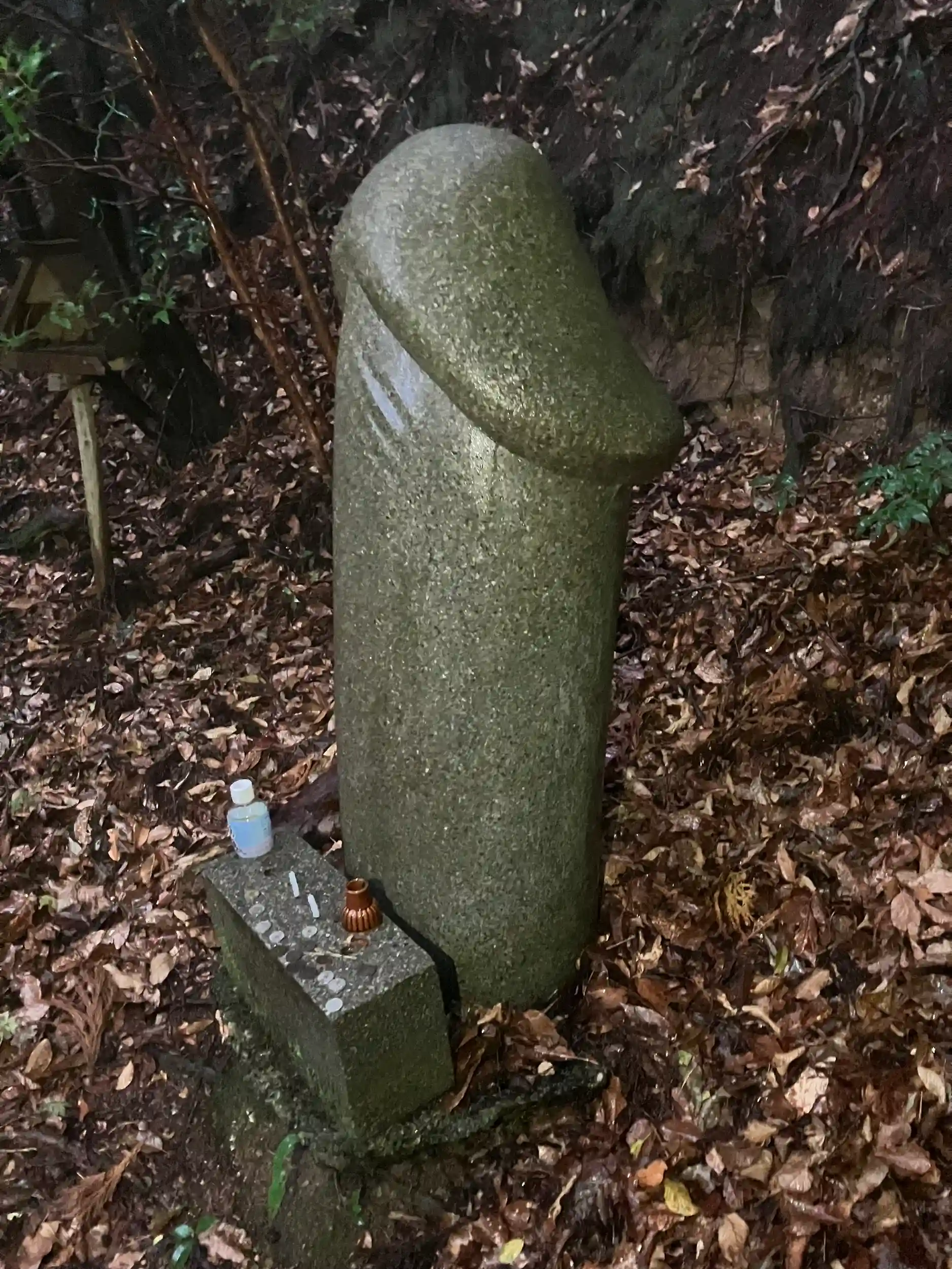 祠の左に男根、右に女陰が鎮座する。
