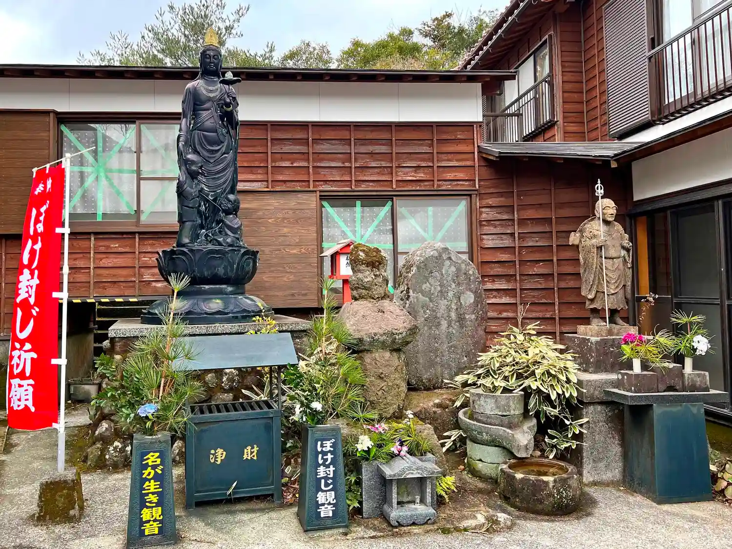 本堂左側にある<ぼけ封じ観音>と仏像群。