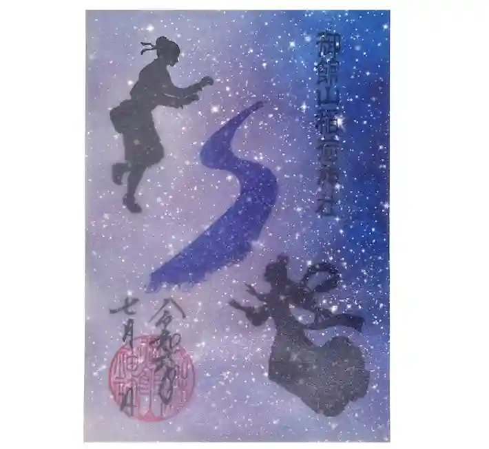 織姫、彦星、天の川のスタンプを押した御朱印に、夏の星空をイメージした透け紙(トレーシングペーパー)を重ねた御朱印です。