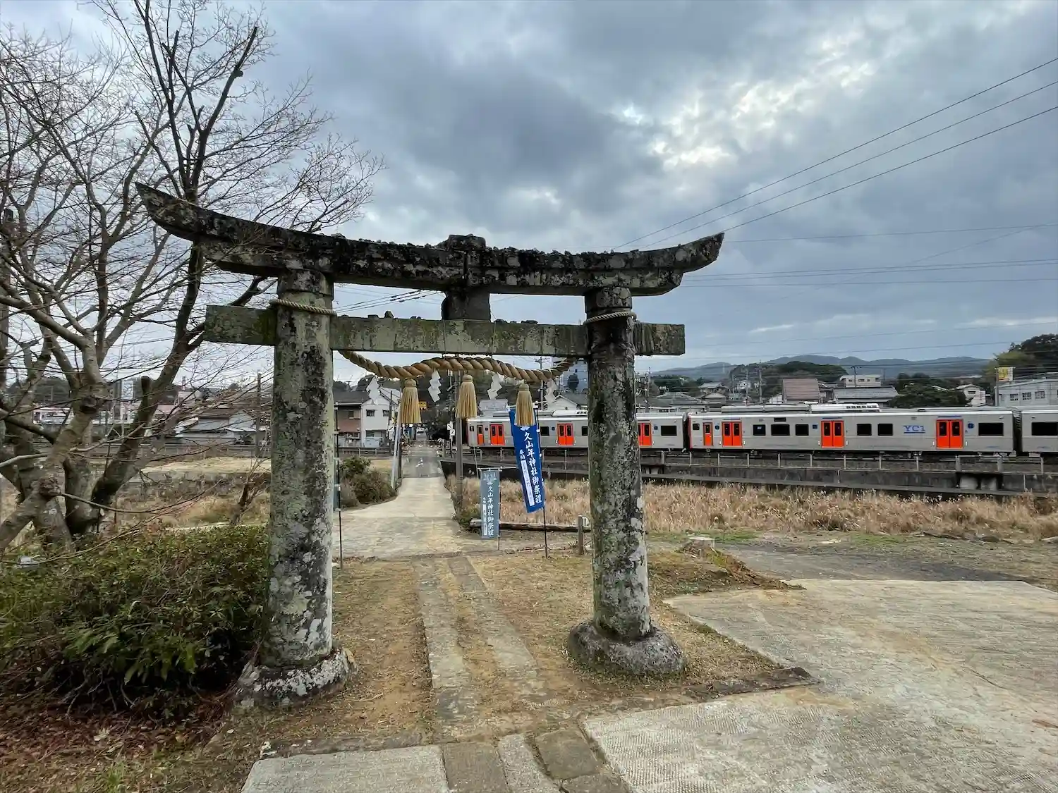 鳥居⛩の中に電車🚃