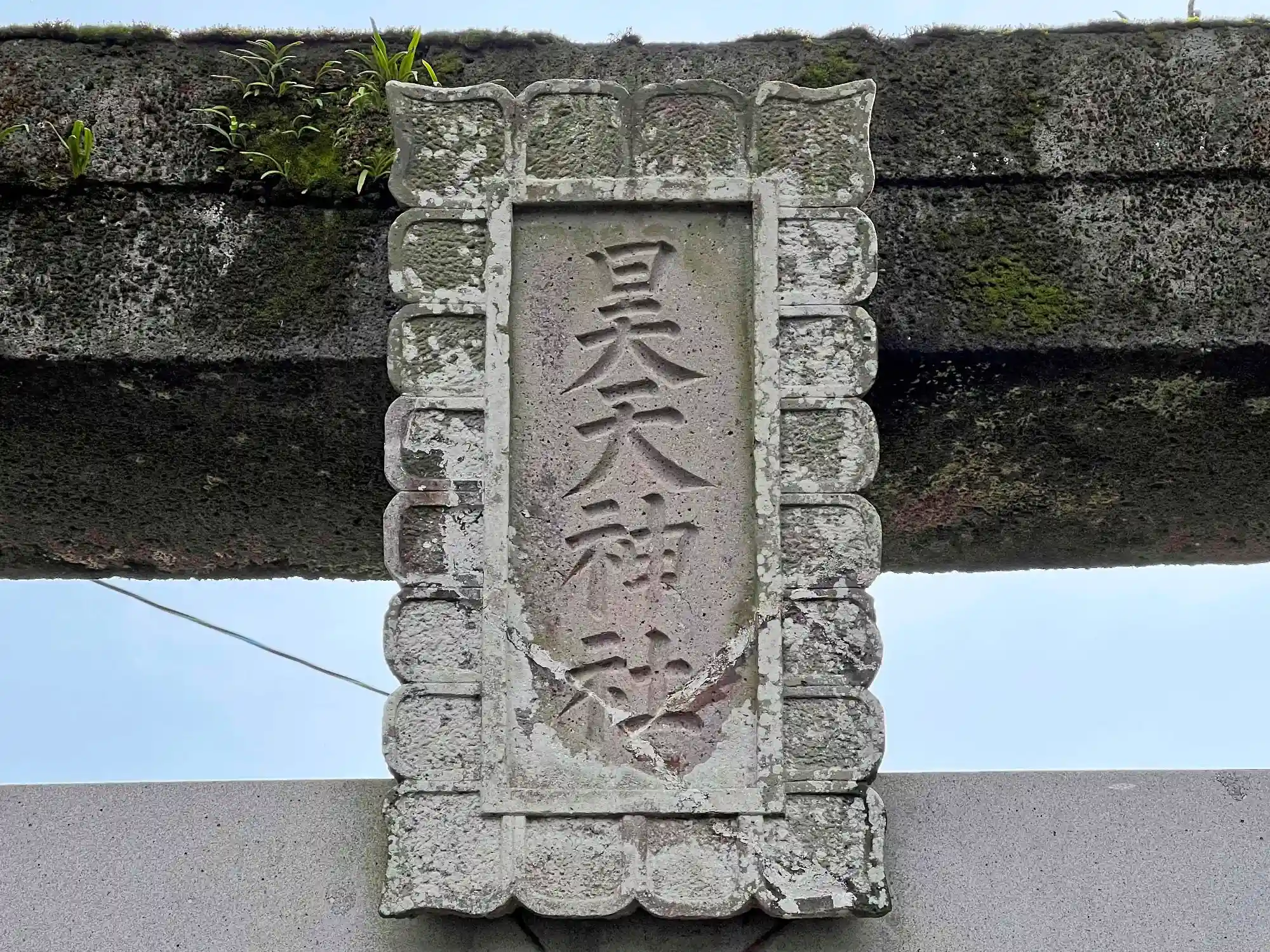 鳥居の石扁額には「昊天神社」と刻まれている。長崎県神社庁の登録名は「昊天宮」。