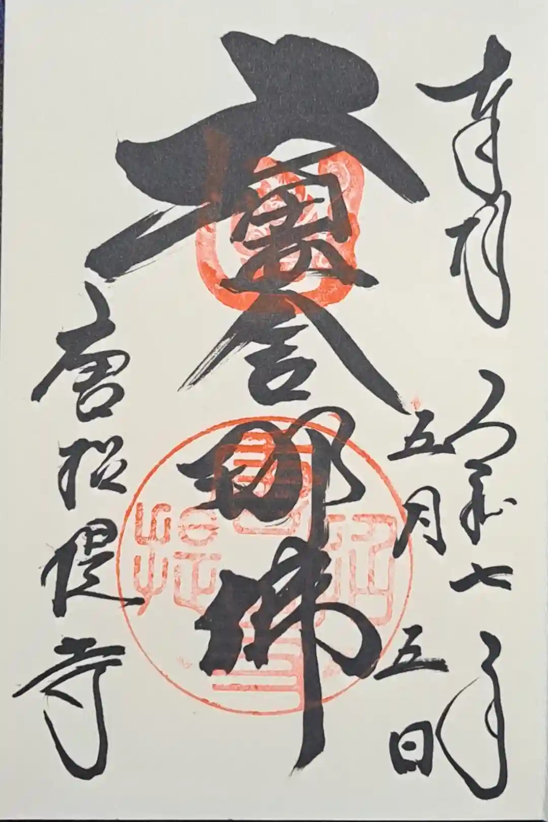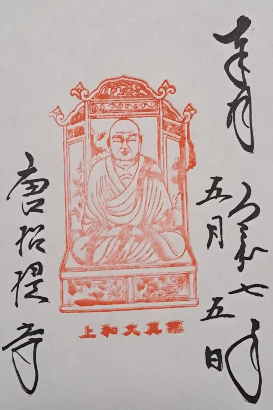 真ん中に鑑真大和上(がんじんだいわじょう)のお姿と文字の印が押され、左下に唐招提寺の文字が入っています。