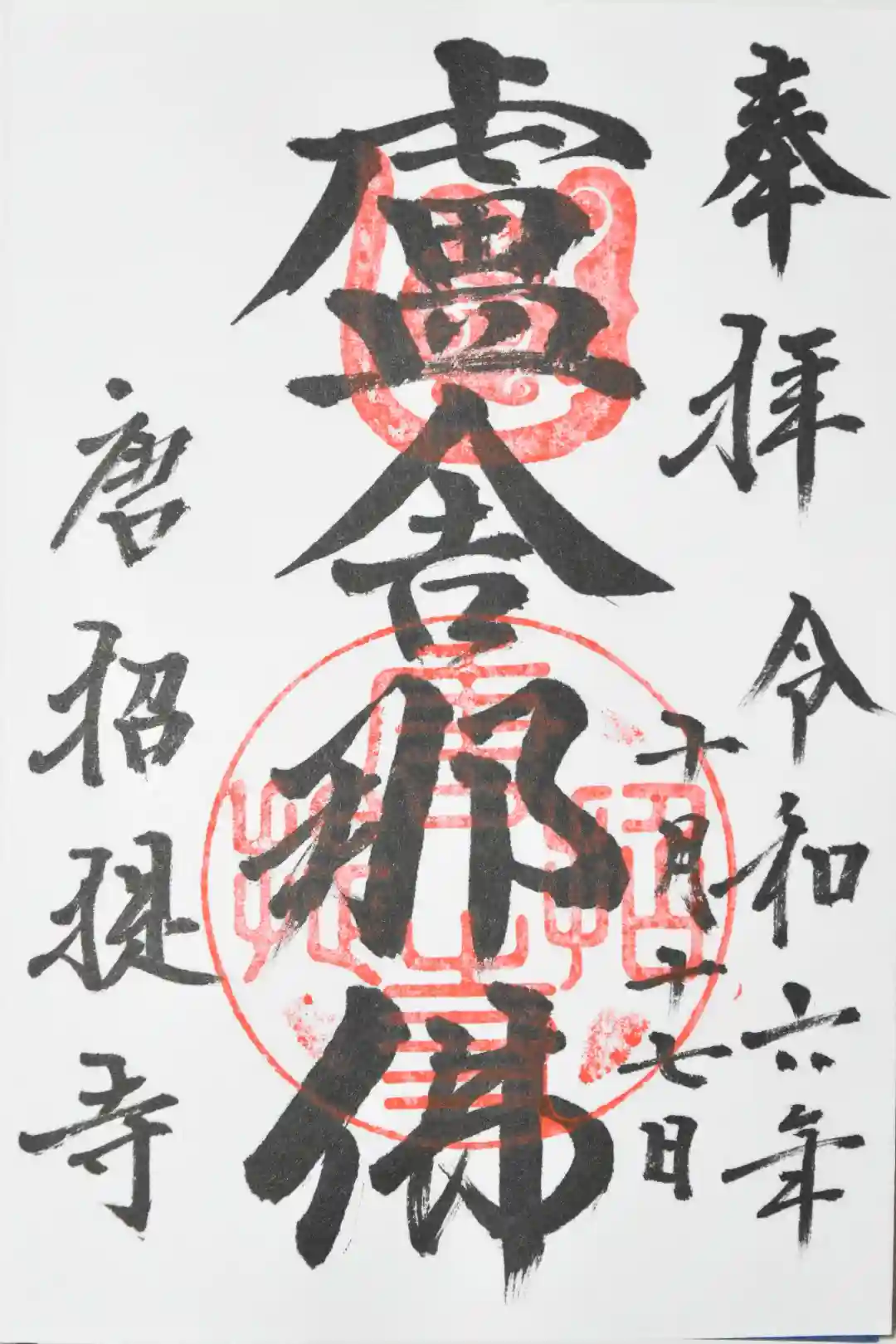 真ん中に盧遮那仏、左下に唐招提寺と書かれ、真ん中に唐招提寺の印が押されています。