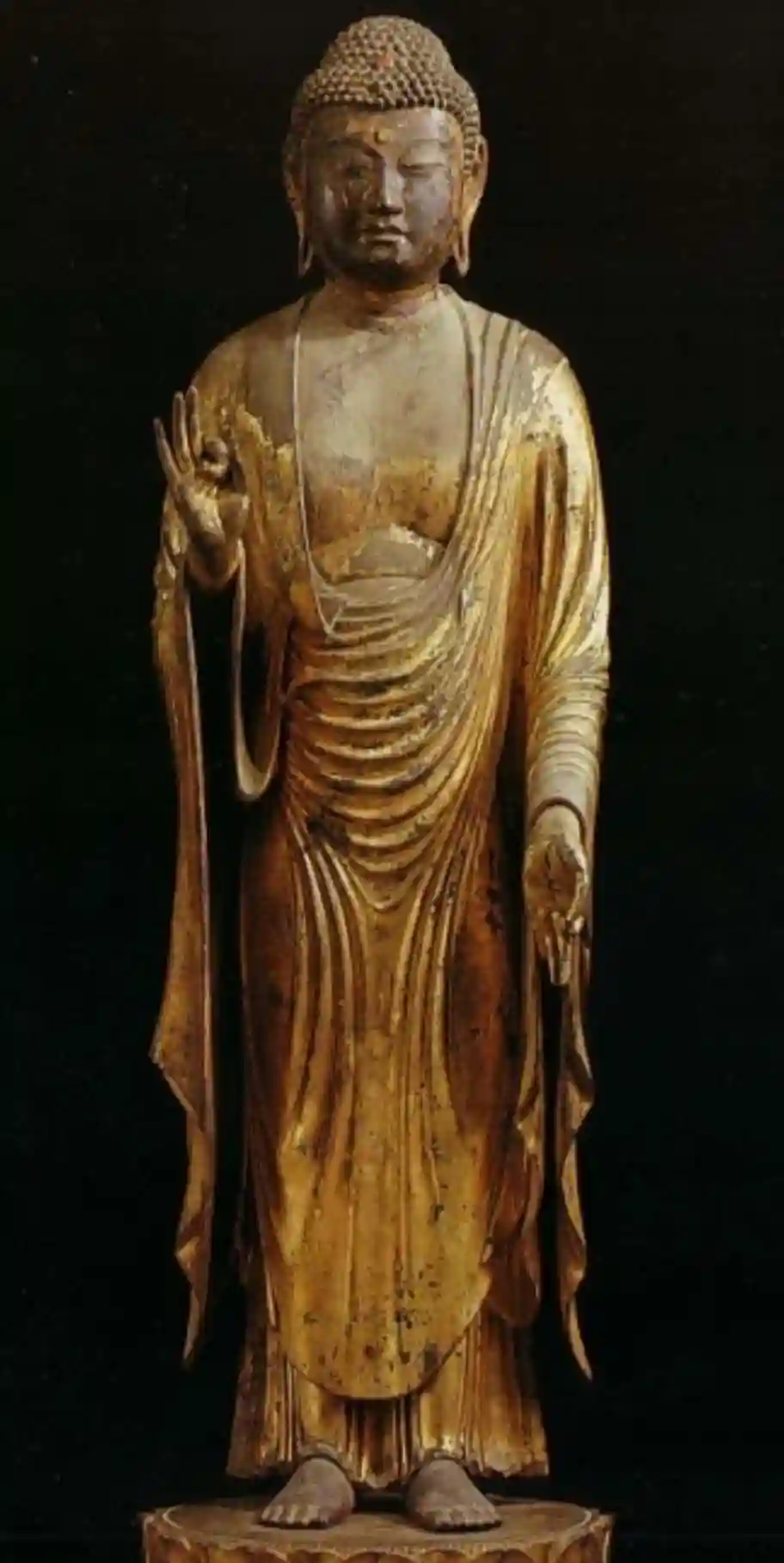 唐招提寺の駐車場(有料・時間制)に停めたまま歩いて向かいました。山門をくぐると庫裏で、拝観予約した者ですと告げるとご住職のお嬢様?が出てこられて、左側の奥に在る本堂に案内頂きました。本堂は収蔵庫にもなっており鍵を開けて頂いて堂内に。厨子に阿弥陀如来立像です。墨書銘から快慶が法眼の時(1208年以降)の作で、快慶晩年頃の作。高さ1m、玉眼。何躯も快慶作の阿弥陀如来立像を拝見していますが、微妙に其々少しずつ違いがあり、趣きがあります。どの像もとても素晴らしい。