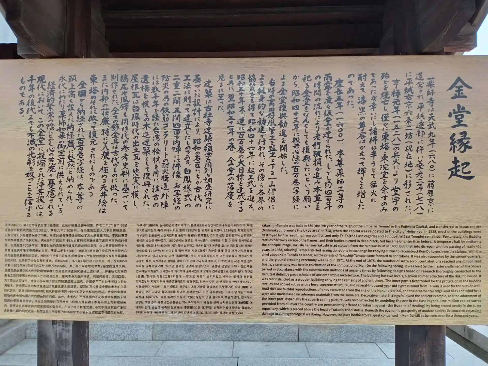 私は美しい薬師寺さんしか知りませんが、戦火で消失したり、長い年月で傷んだお堂の復興には、高田好胤さんを初めたくさんの方々の思いの積み重ねがあったのだろうと、お参りする度に感じるお寺さんです。