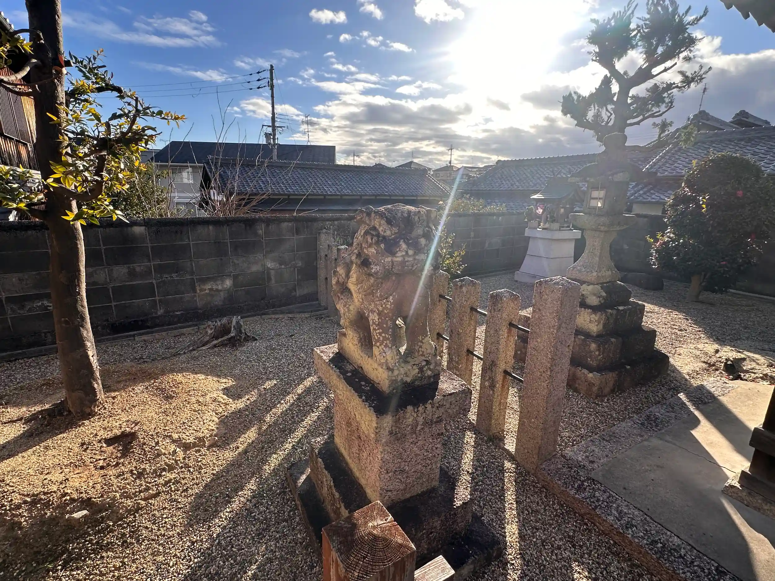 住宅街に鎮座されています、石の鳥居が周りの住宅より目立ちます、境内にある騎馬像は楠木正成公ともいわれていますが、定かではありません、境内はとても綺麗にされています