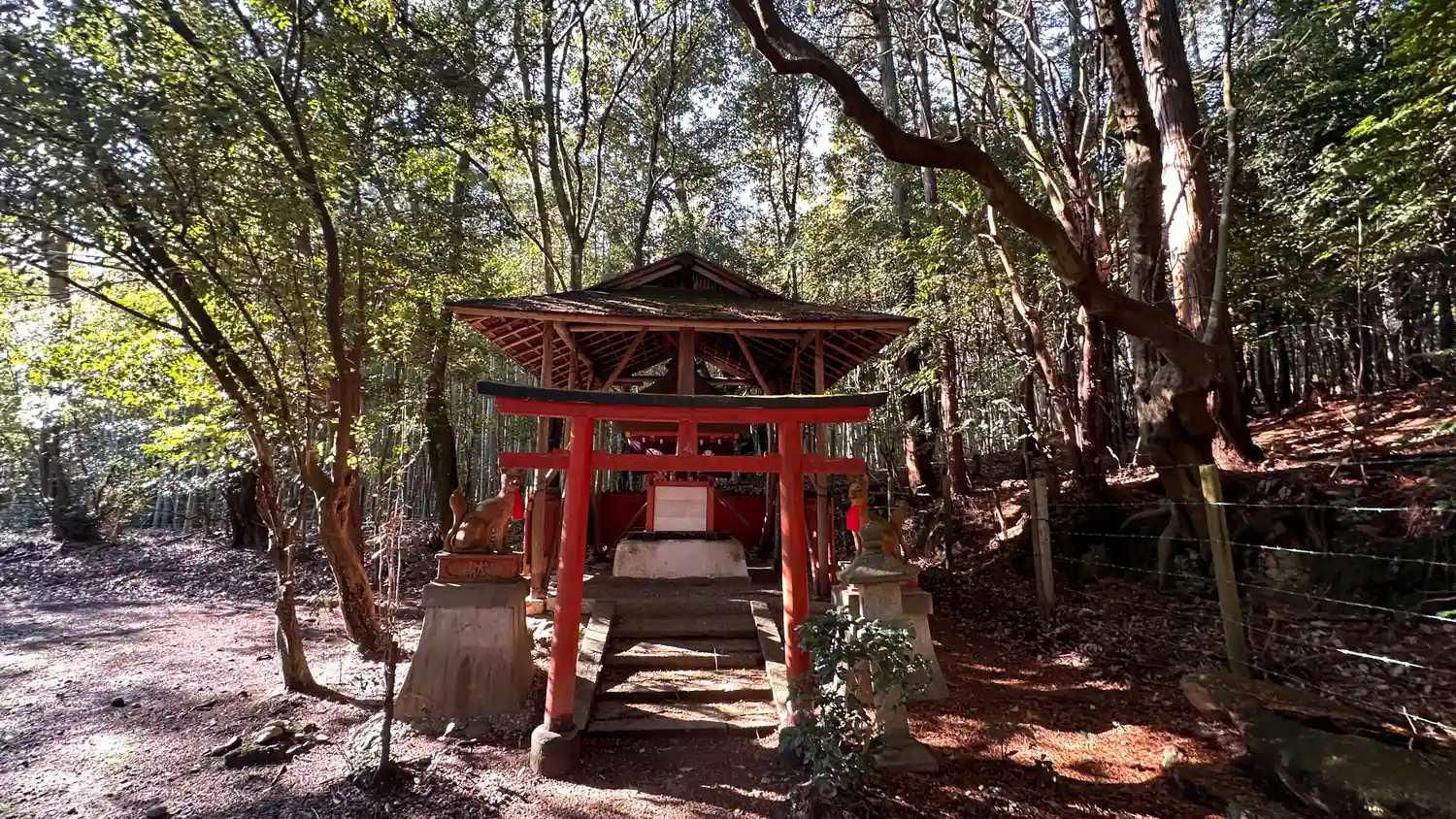 竹林を進むと、有刺鉄線で囲われた境内へと 入り口付近には猪の足跡・・有刺鉄線の意味が分かりました、…