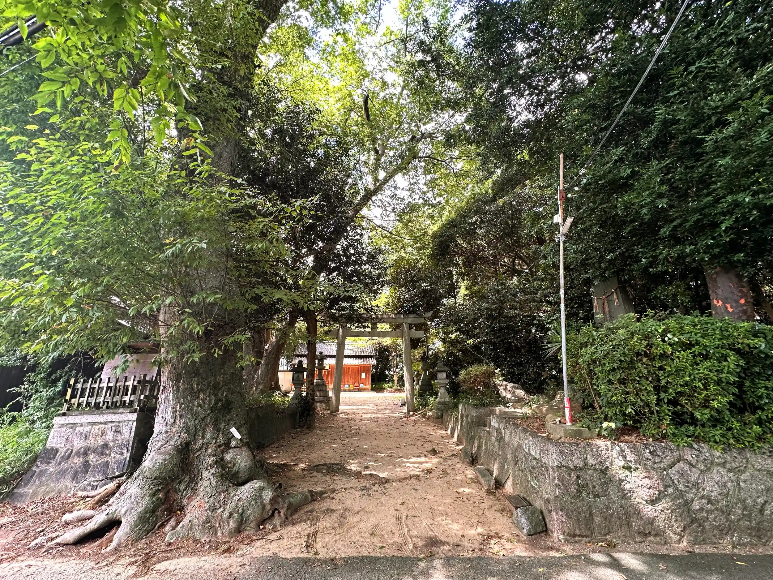 延喜式 式内社です。銅板葺・一間社春日造の本殿 拝殿はありません、巨樹好きにはたまらない本殿横の御神木、鳥居手前の欅の巨樹 こんもりとした森に囲まれています まさに森神社