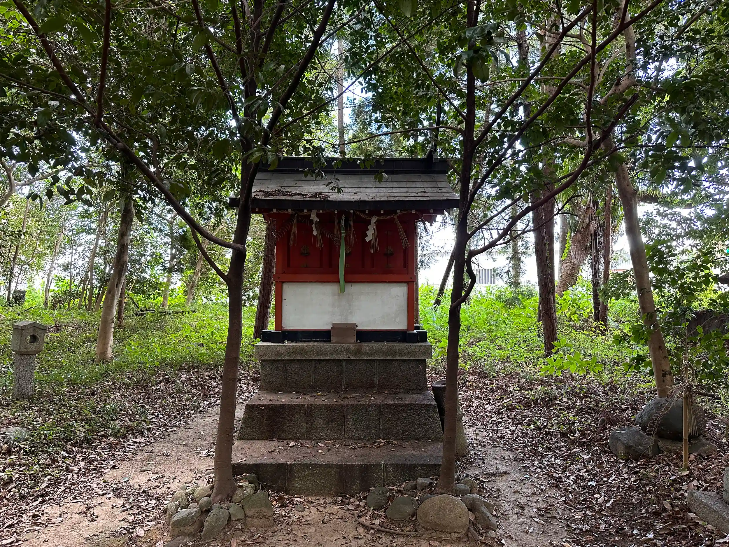 三間社流見世棚造で森神社の北側に鎮座されています。鬱蒼とした森の中にあります、すぐ近くに幹線道路があり交通量も多いですが、ここは雰囲気が全く変わります。