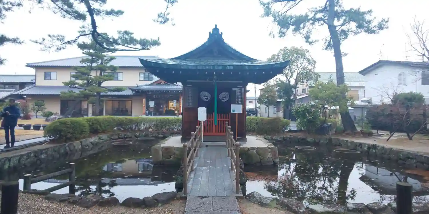 近鉄橿原線「尼ヶ辻駅」下車徒歩12分。大和北部八十八ヶ所霊場第25番札所の法相宗寺院。
