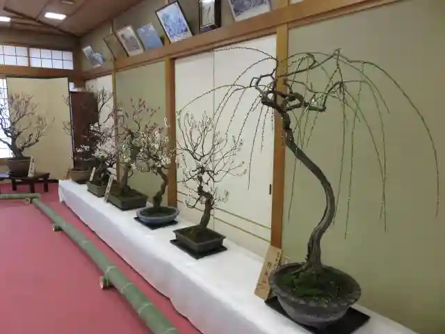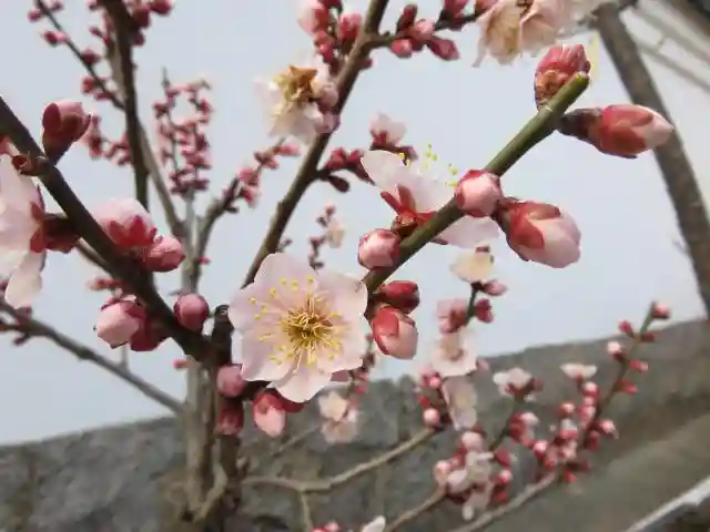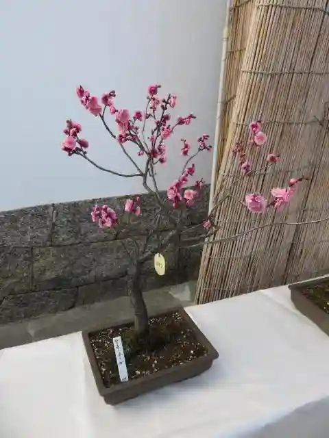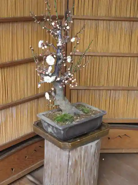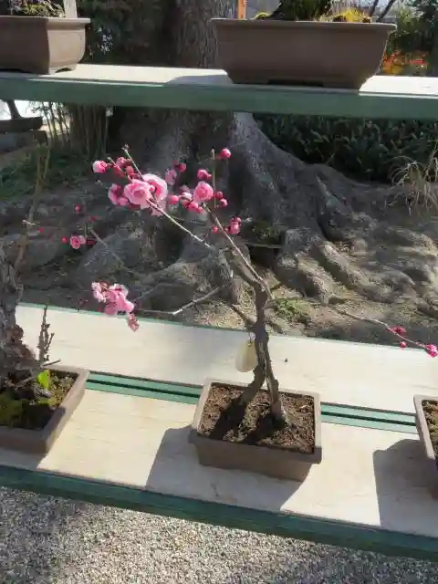 境内の梅はまだ咲き始めでしたが、盆梅は満開の鉢もあり、可愛いつぼみから奇麗な花まで楽しめました。