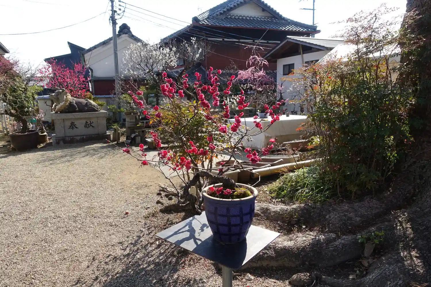 境内の梅はまだ咲き始めでしたが、盆梅…
