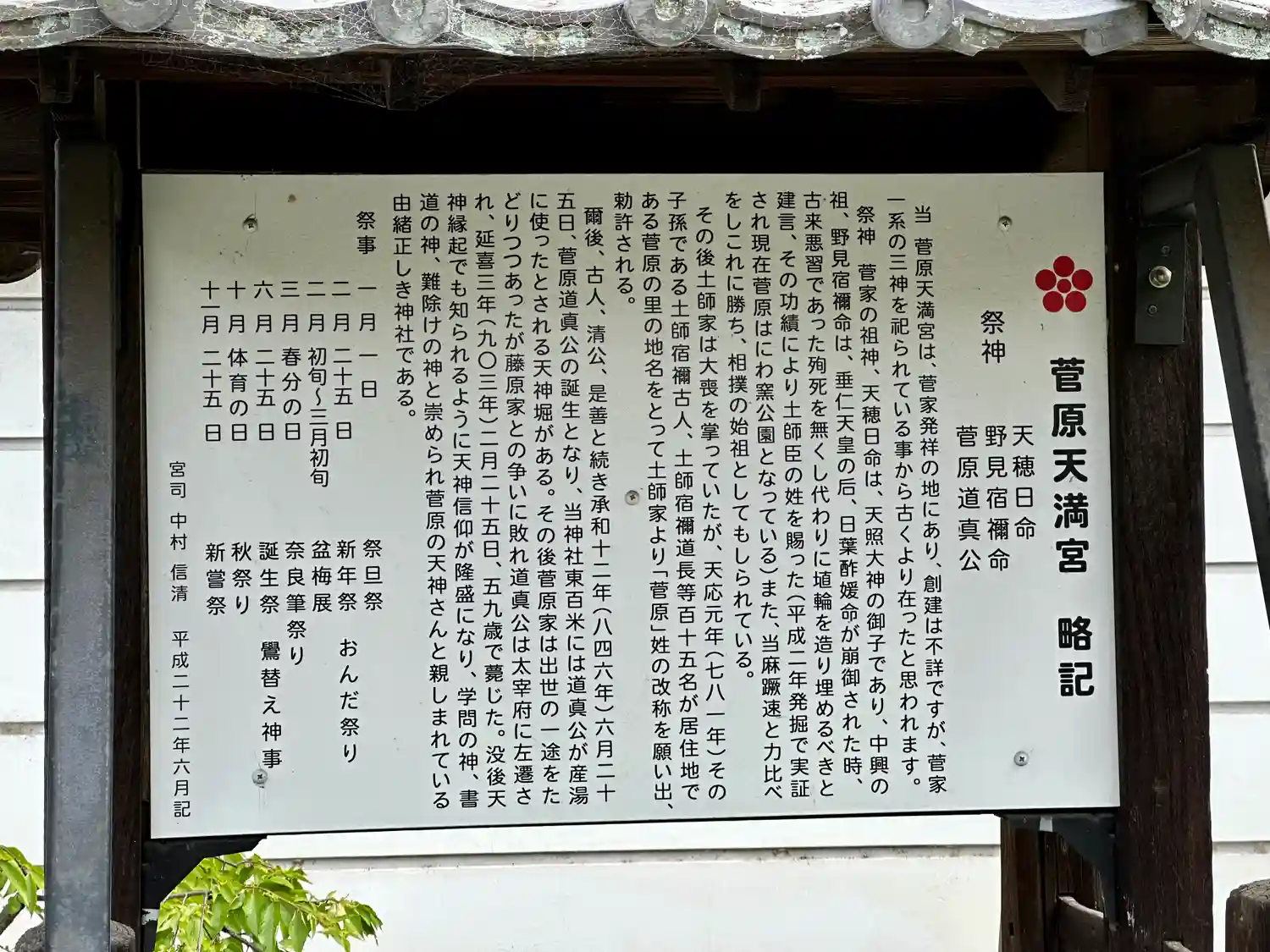 御祭神 天穂日命、野見宿祢命、菅原道真公